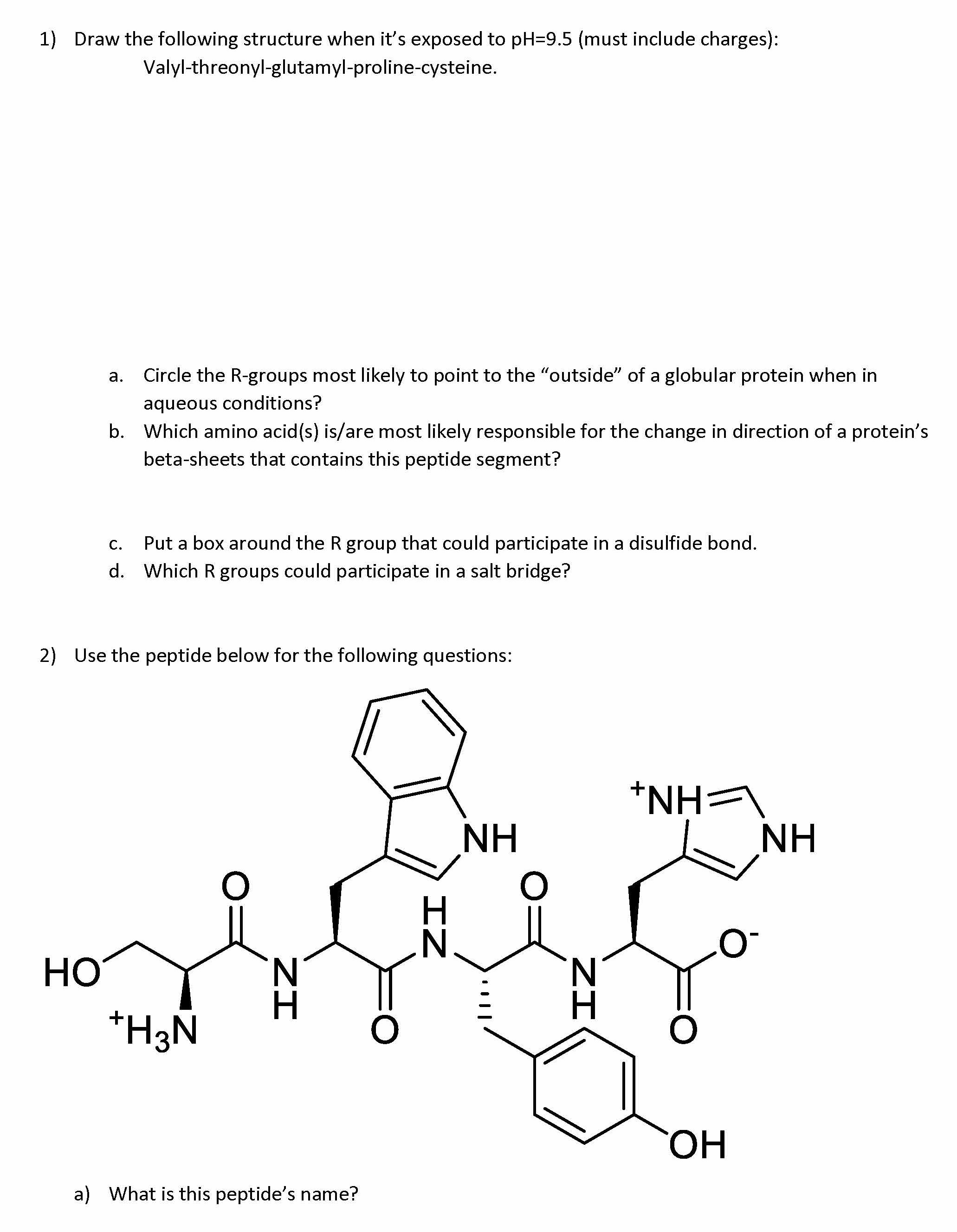 1) Draw the following structure when it’s exposed to pH=9.5 (must...