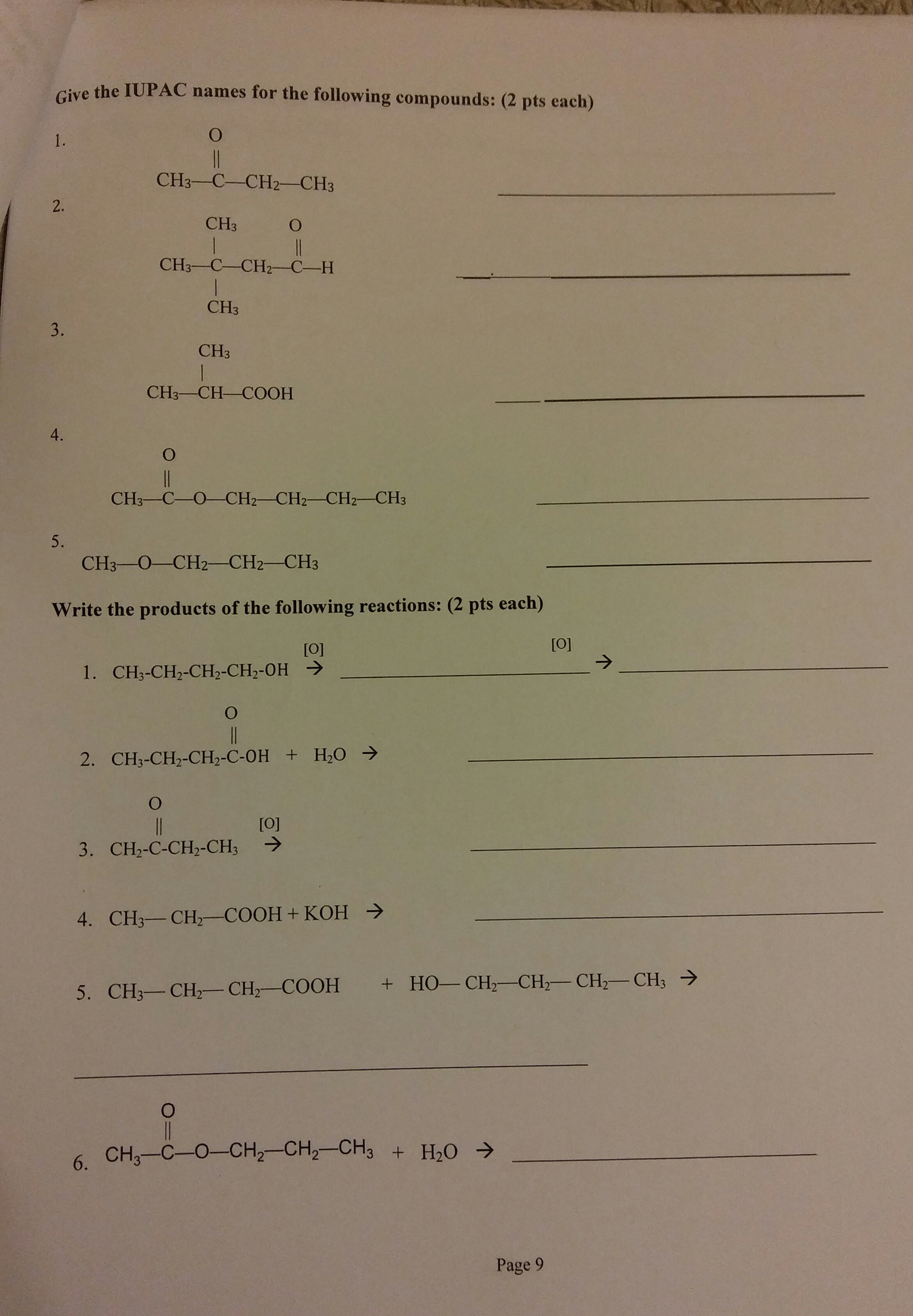 Give the IUPAC names for the following compounds: (2 pts each) 1. ...