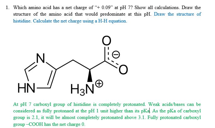 1. Which amino acid has a net charge of “+ 0.09†at pH 7? Show...