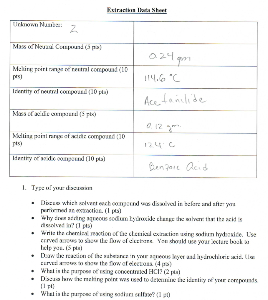 Extraction Data Sheet Unknown Number: 2 Mass of Neutral Compound...