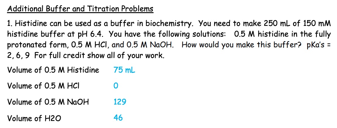Additional Buffer and Titration Problems 1. Histidine can be used ...