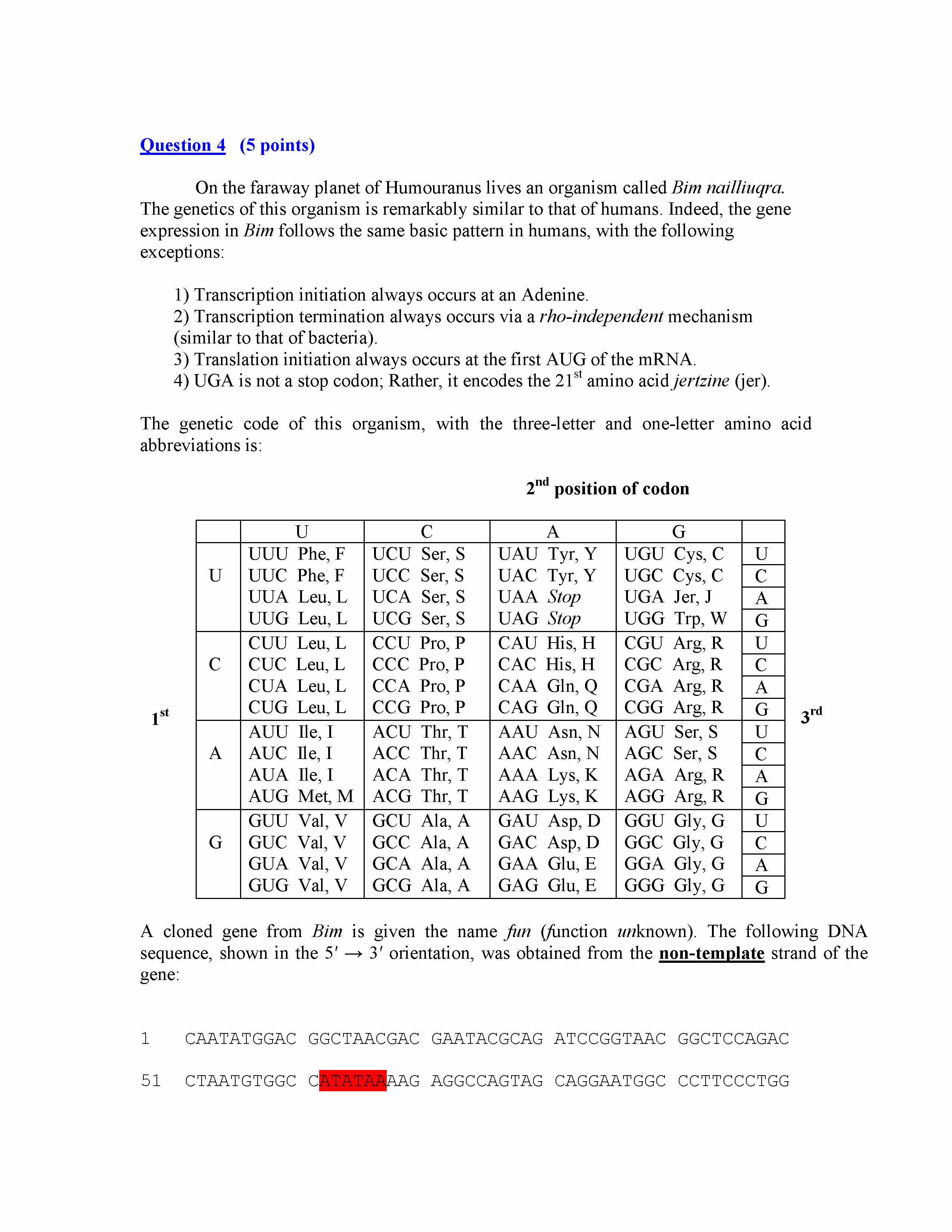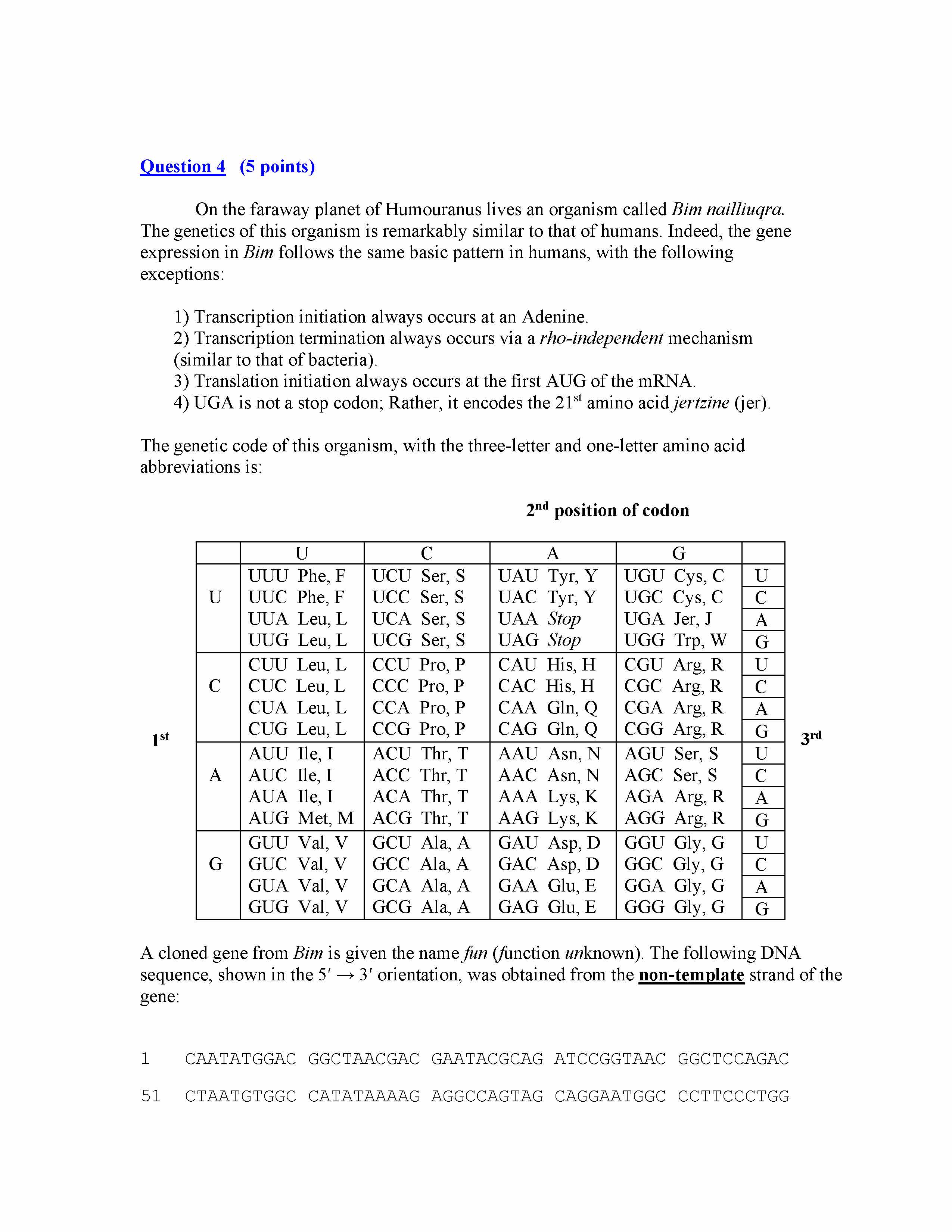Question 4 (5 points) On the faraway planet of Humouranus liv...