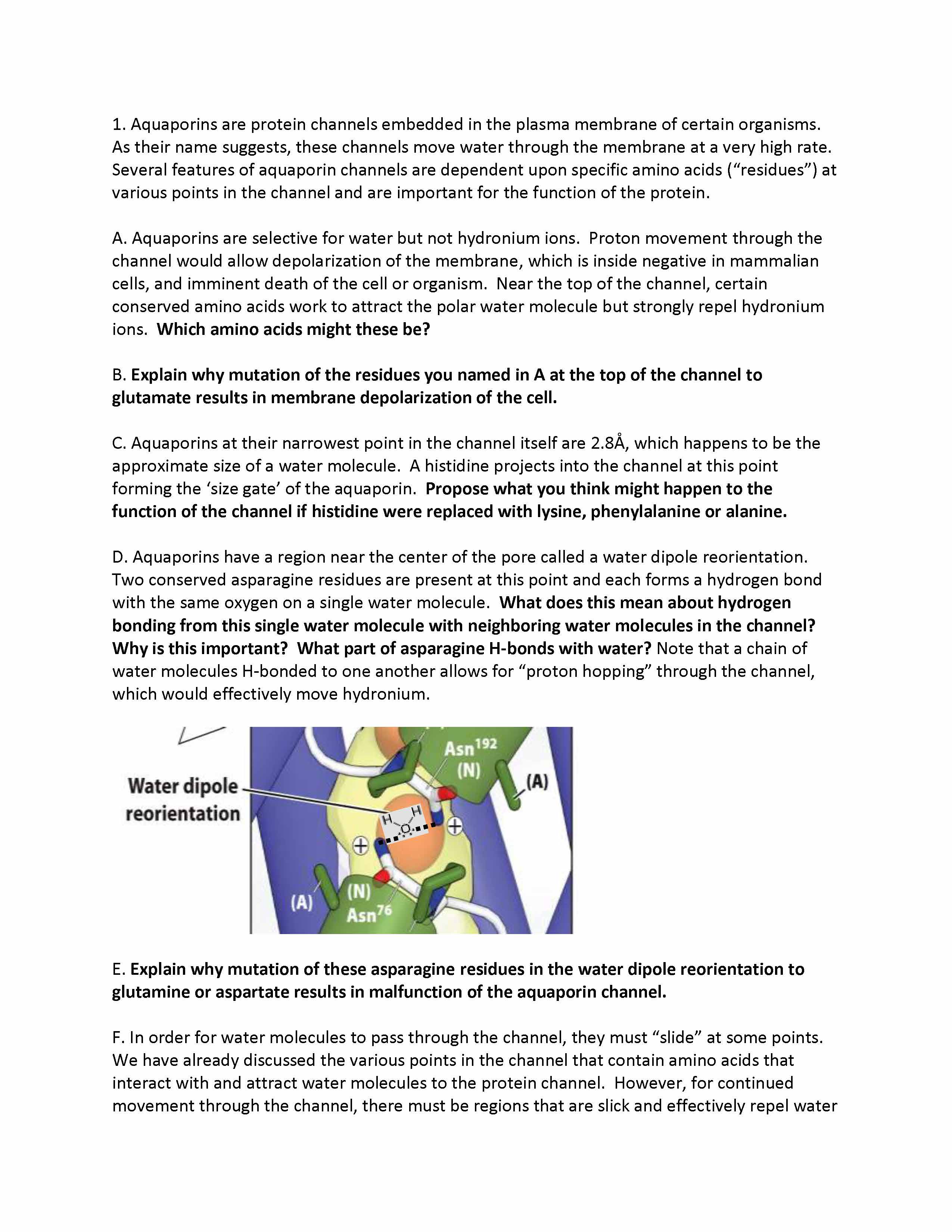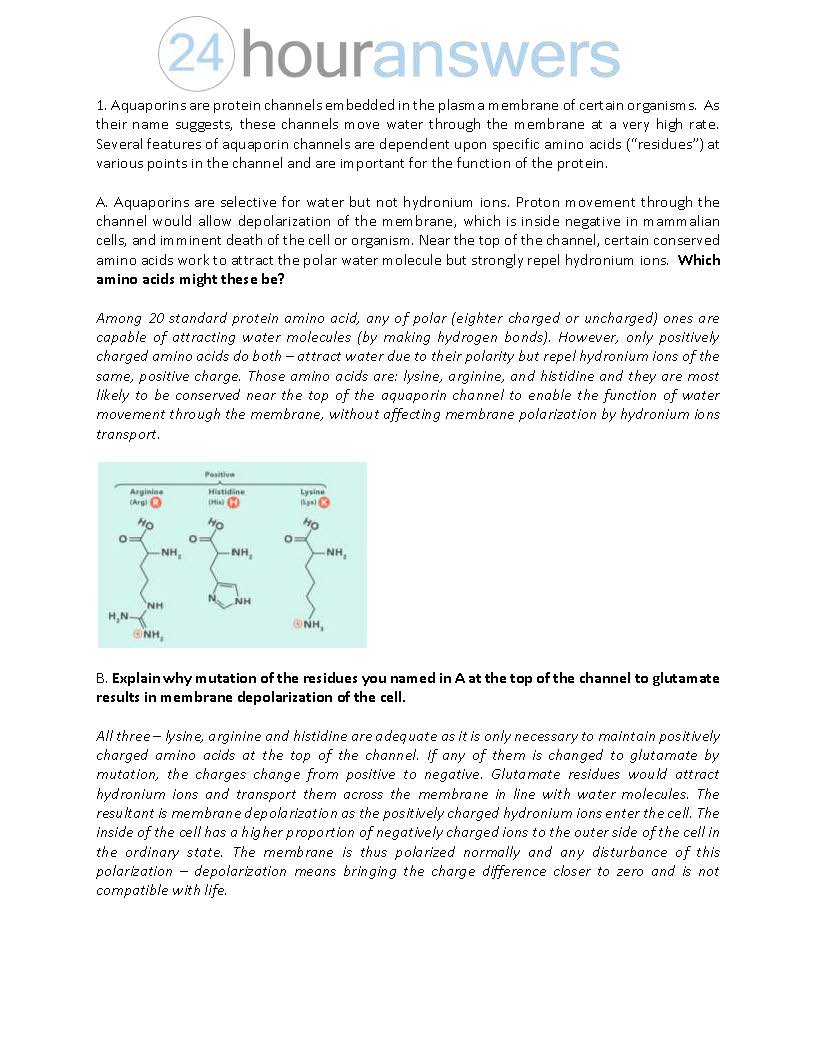 1. Aquaporins are protein channels embedded in the plasma membrane...