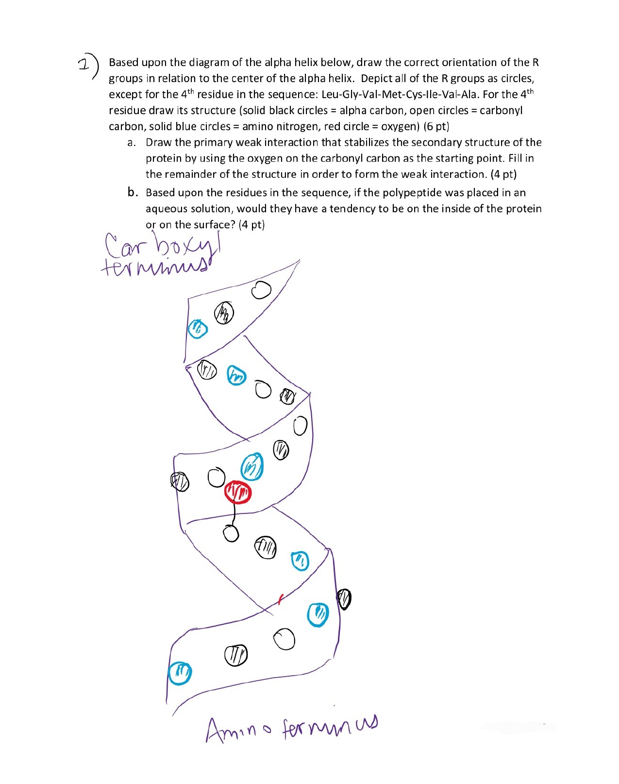 1) Based upon the diagram of the alpha helix below, draw the corre...