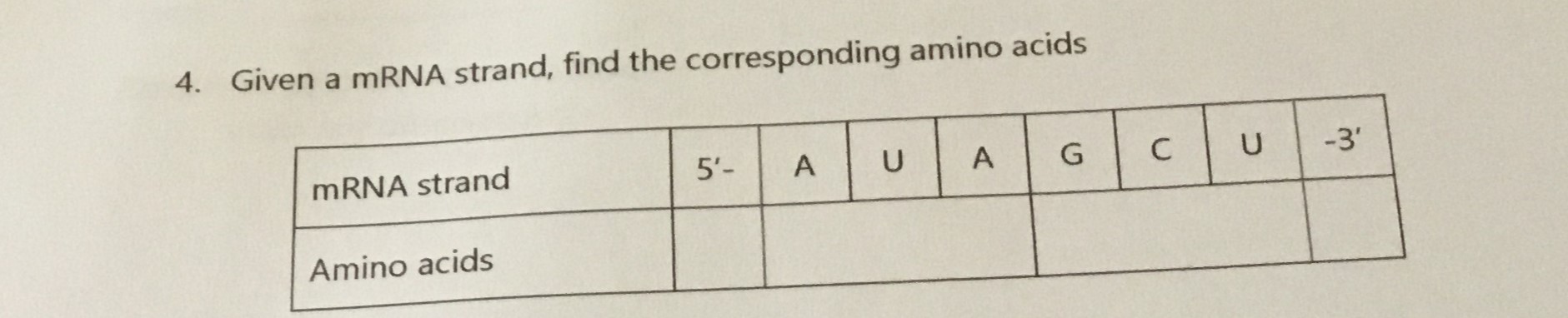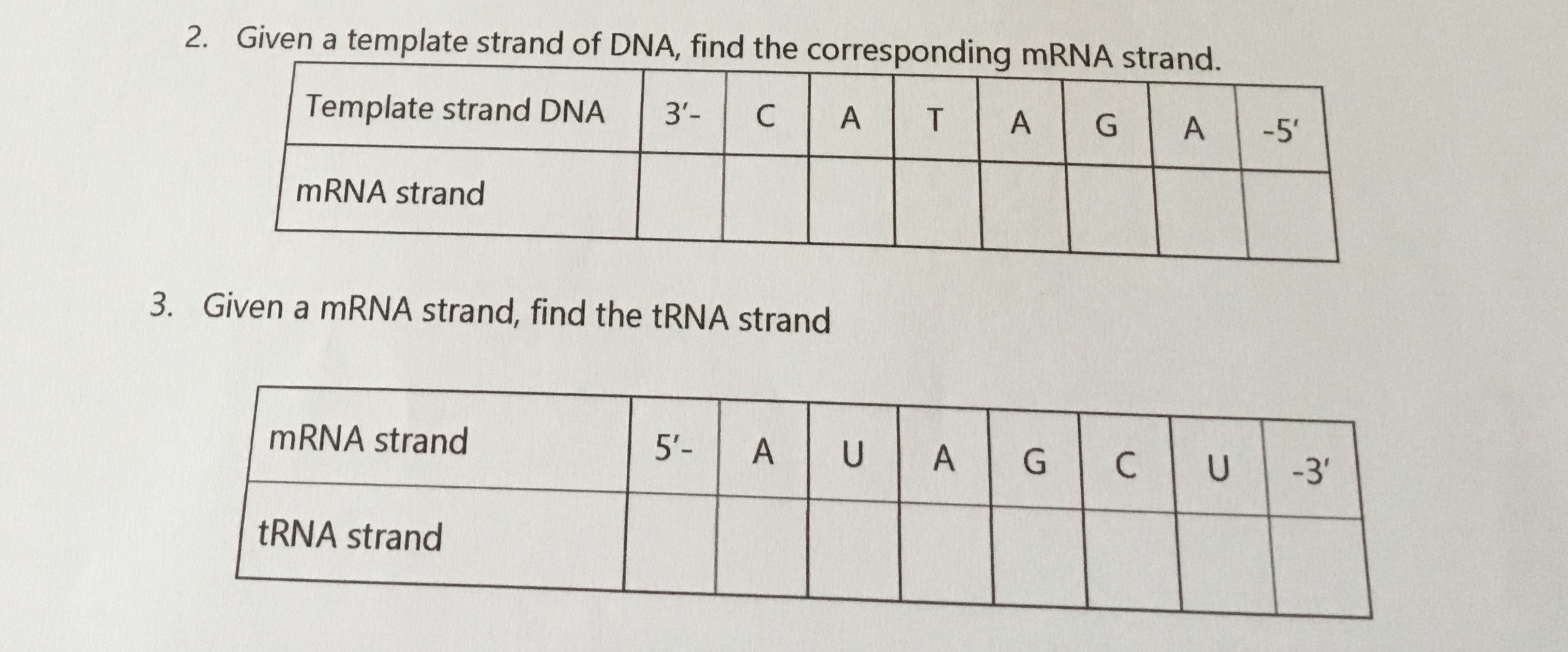 2. Given a template strand of DNA, find the corresponding mRNA stra...