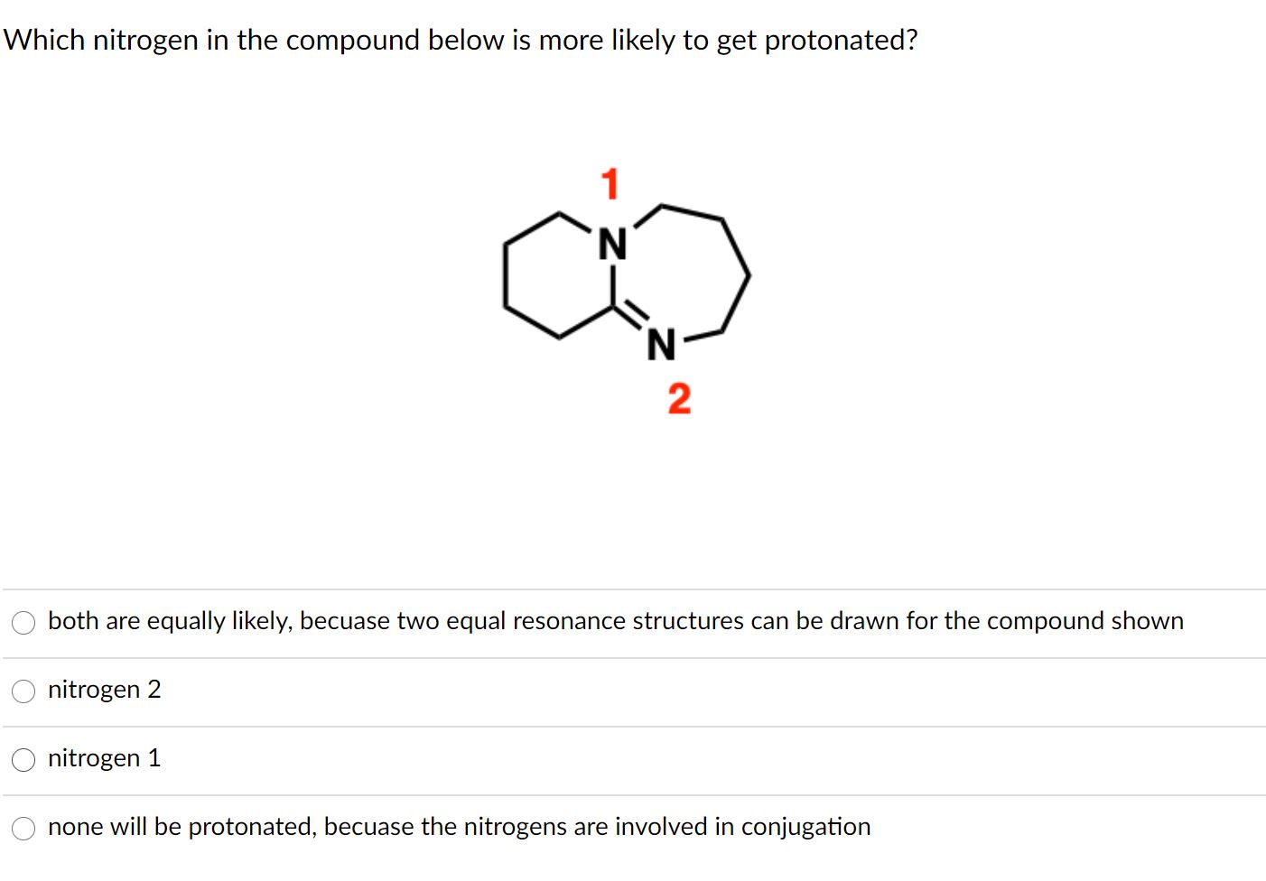 Which nitrogen in the compound below is more likely to get protonat...