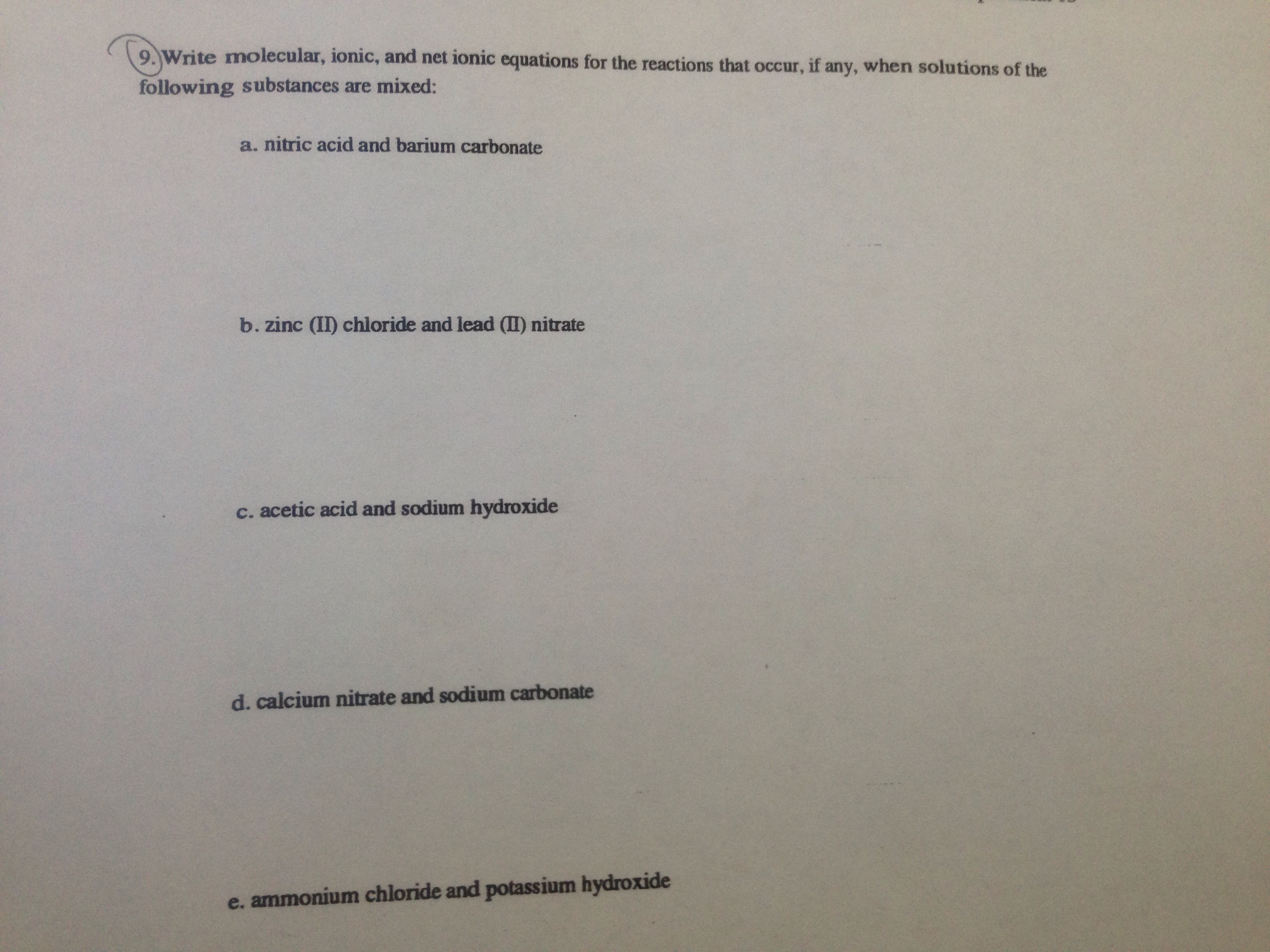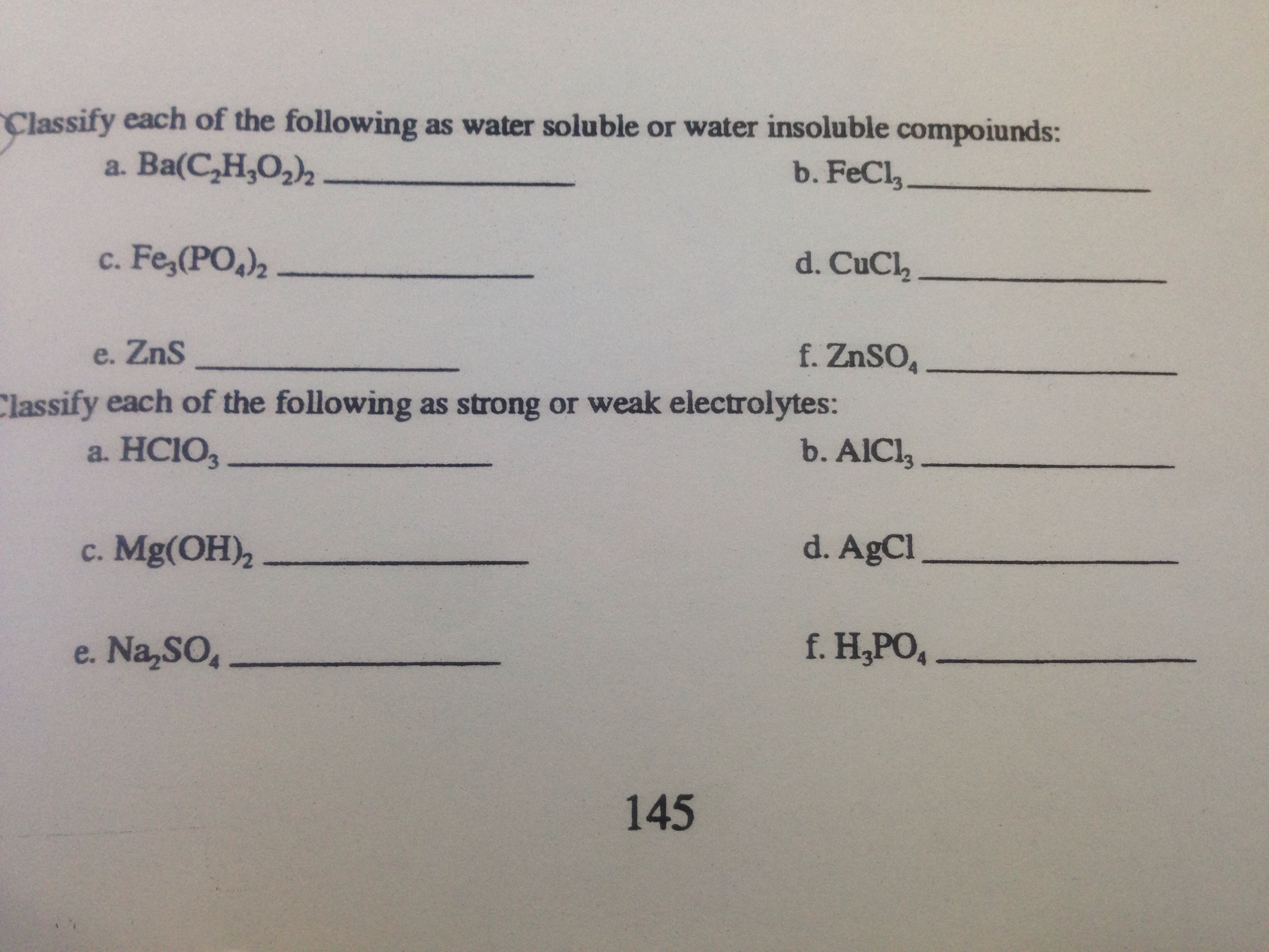Classify each of the following as water soluble or water insoluble ...
