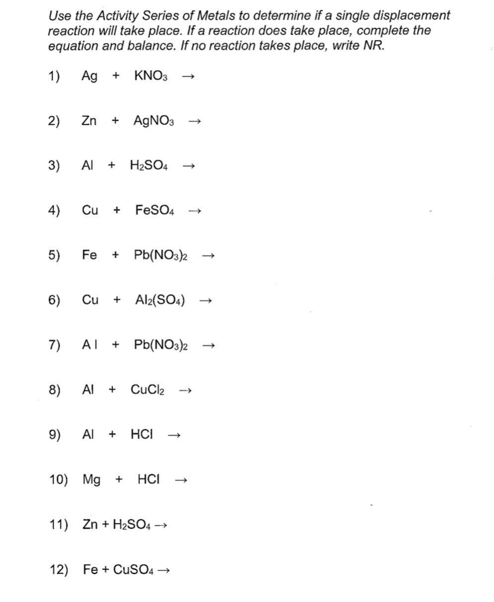 Use the Activity Series of Metals to determine if a single displace...
