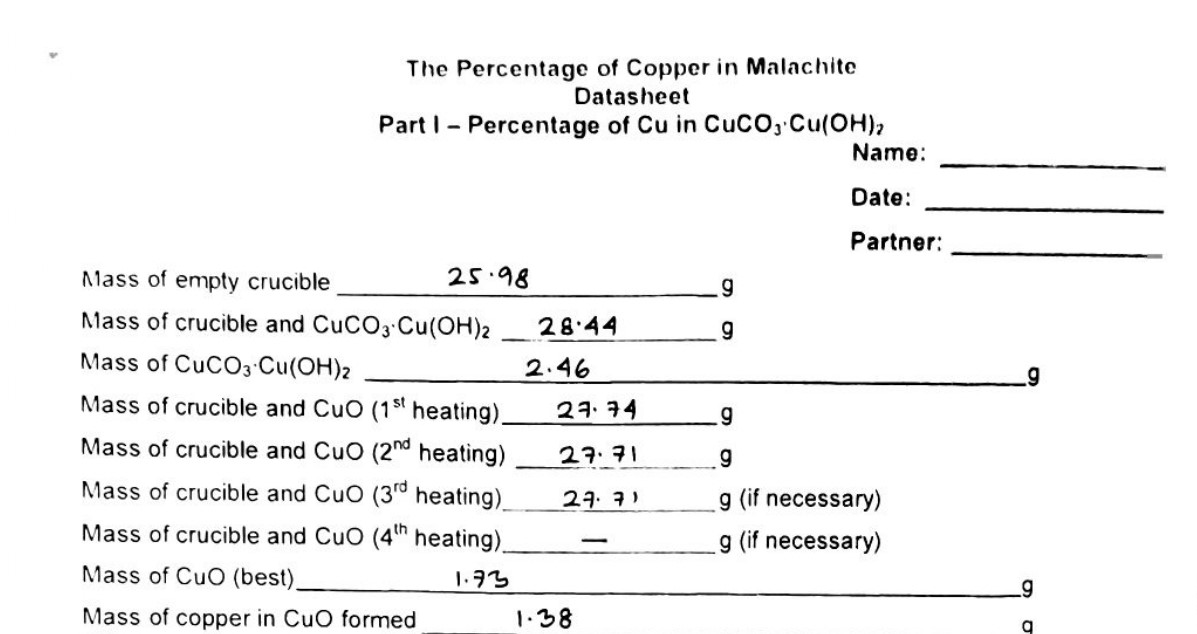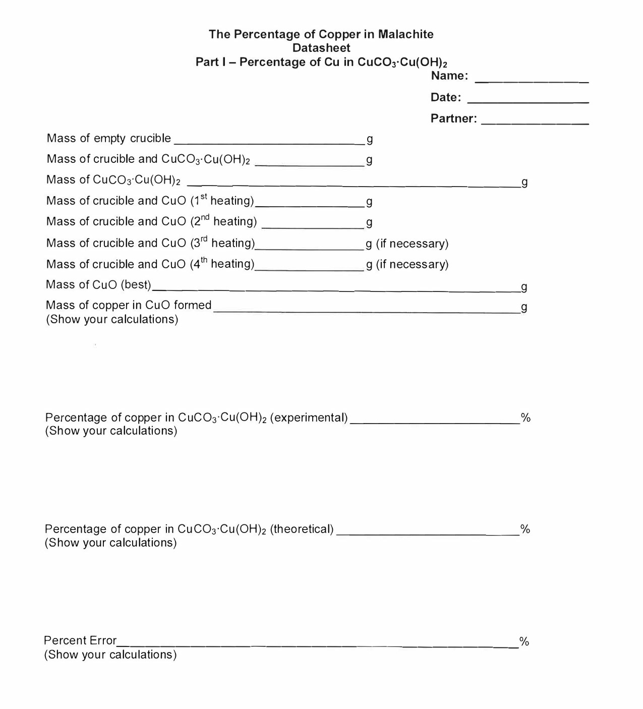 The Percentage of Copper in Malachite Datasheet Part I - Percenta...