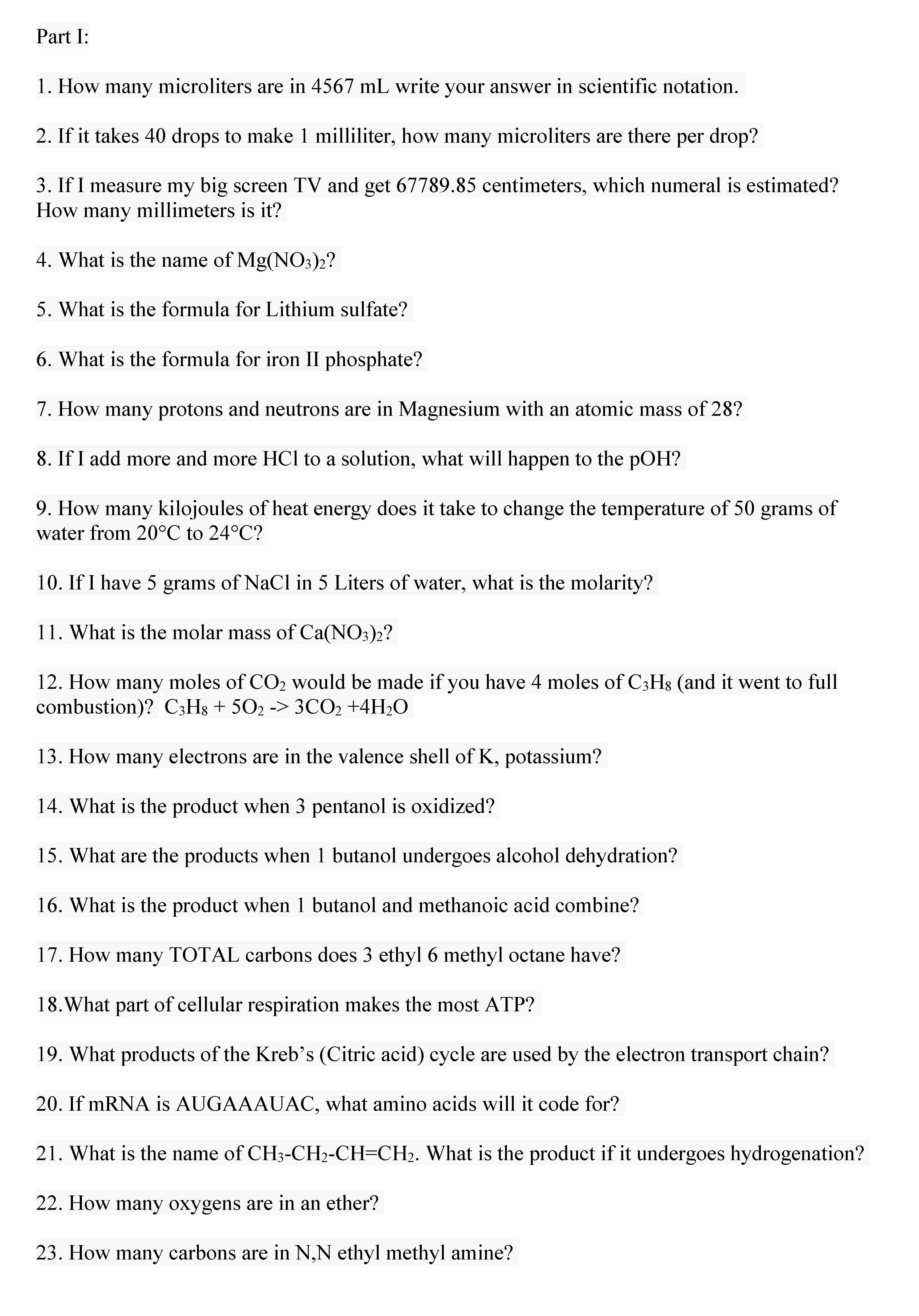 Part I: 1. How many microliters are in 4567 mL write your answer i...