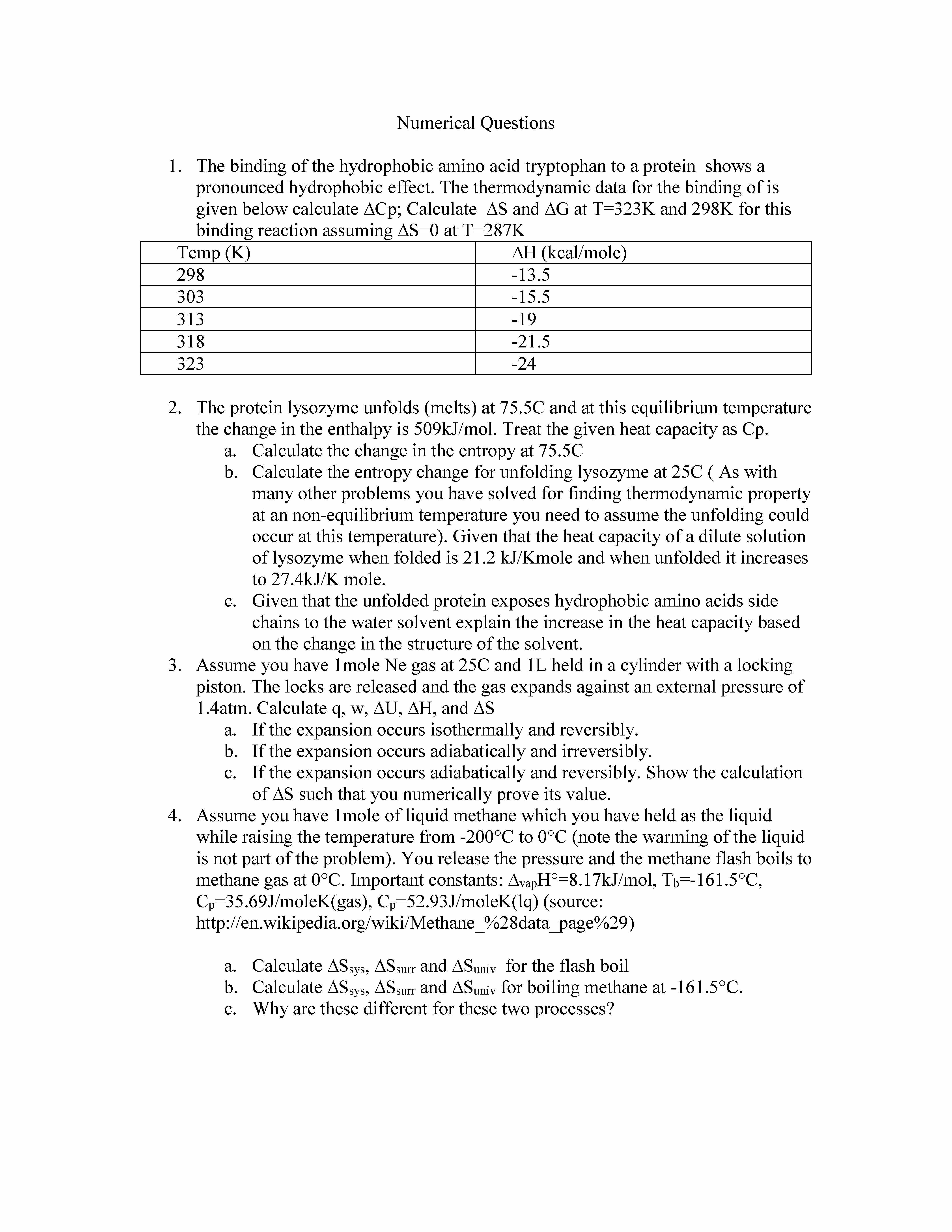 Numerical Questions 1. The binding of the hydrophobic amino acid t...