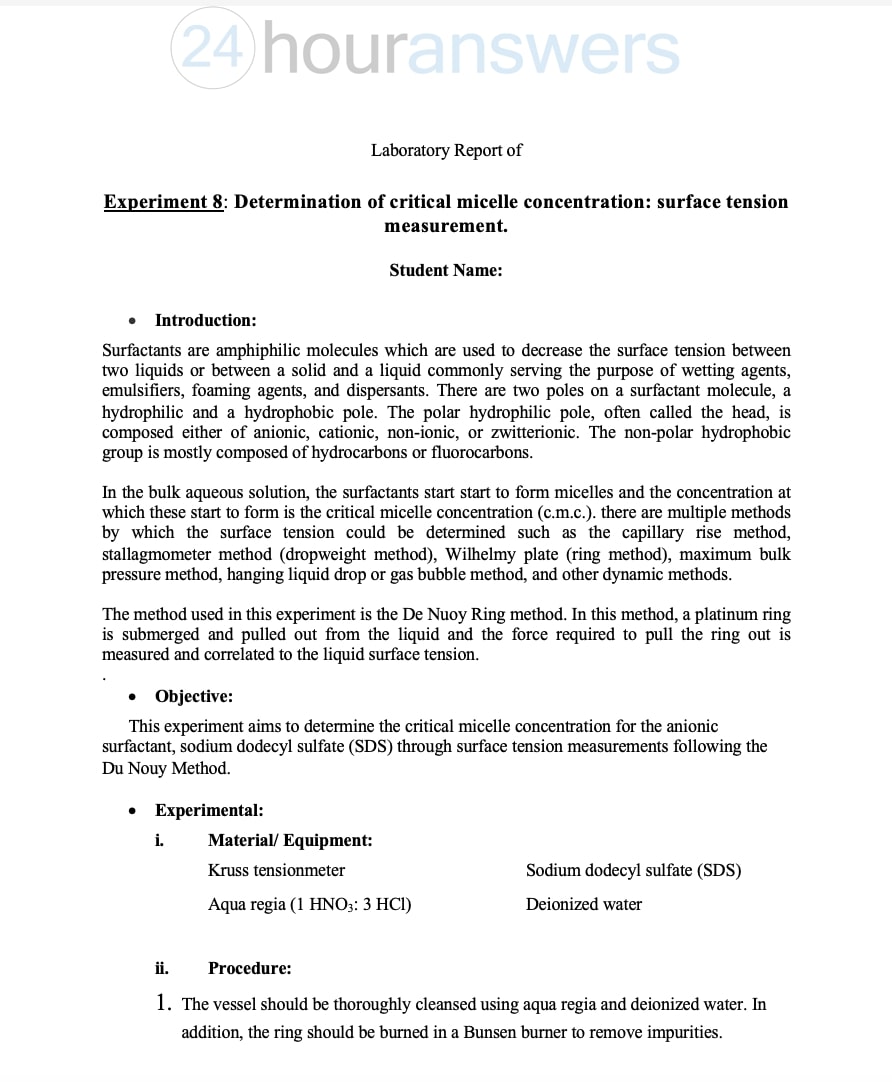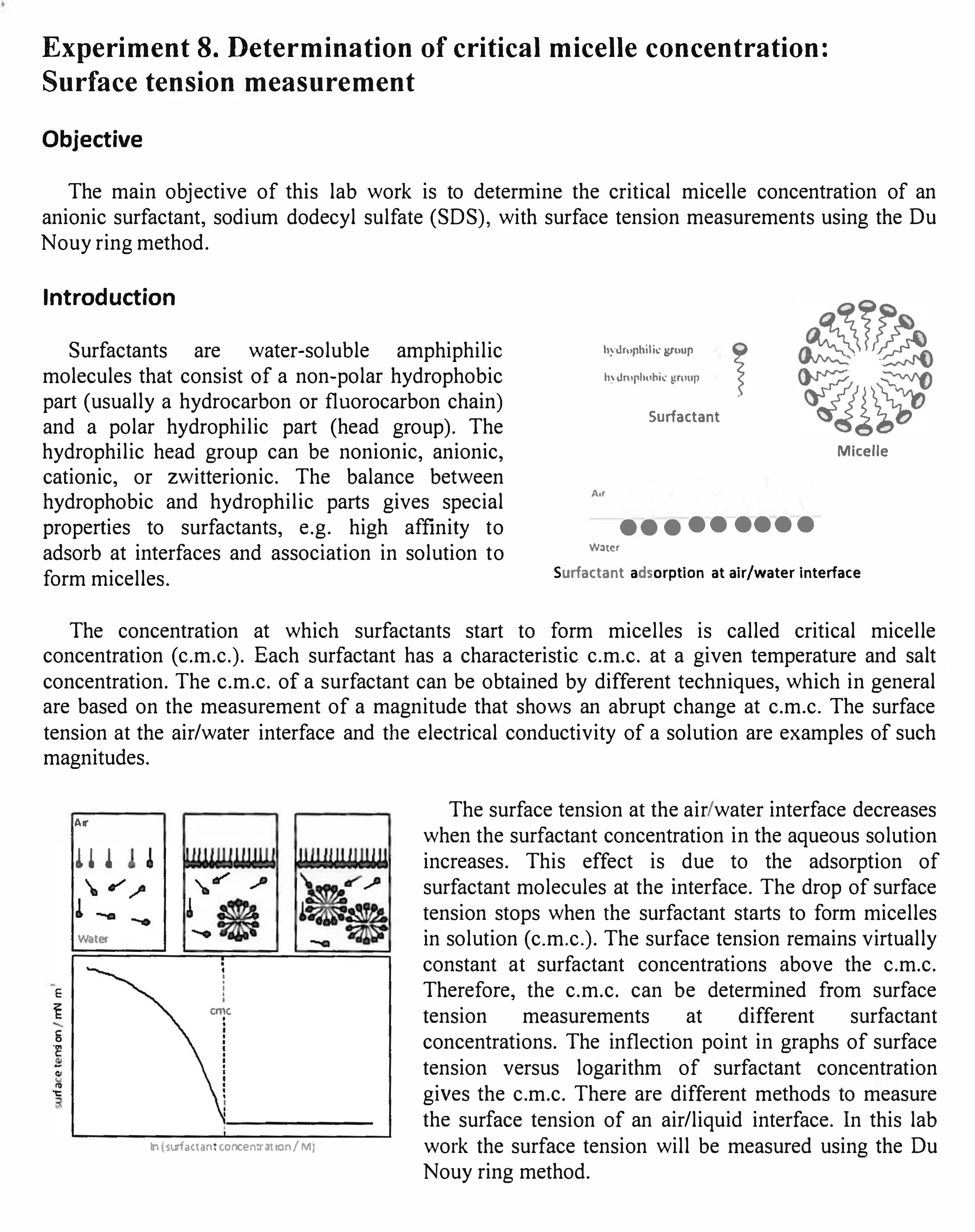 Experimenta Experiment 8. Determination of critical micelle concen...