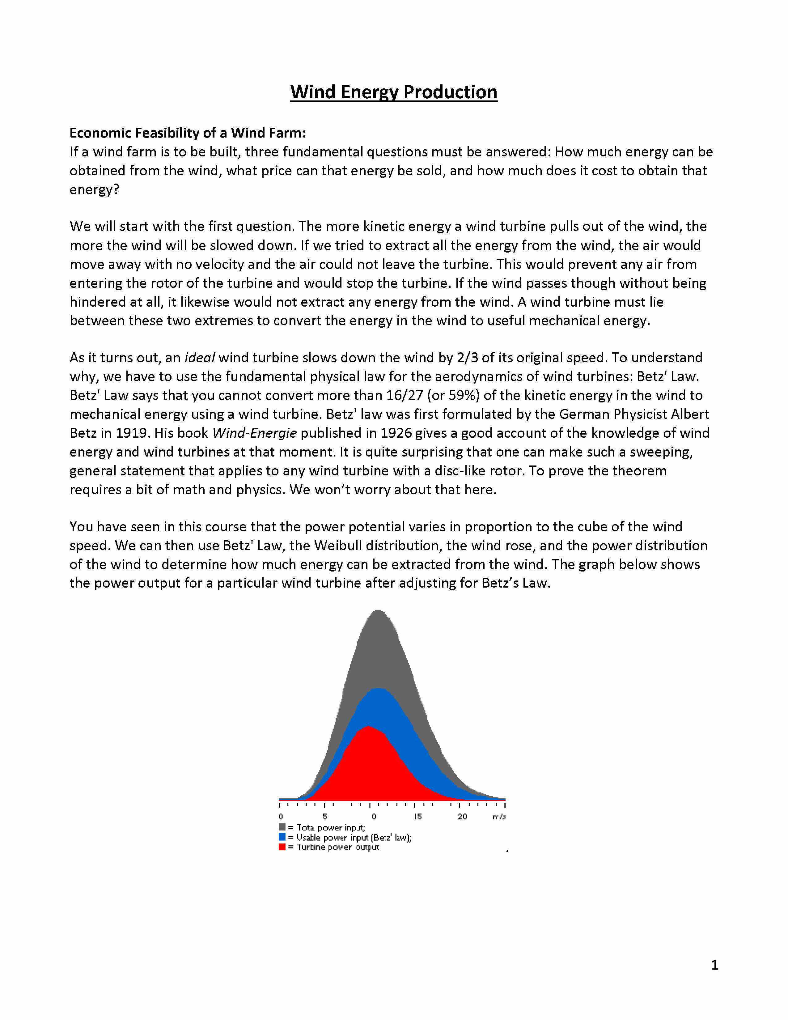 Wind Energy Production Economic Feasibility of a Wind Farm: If a...