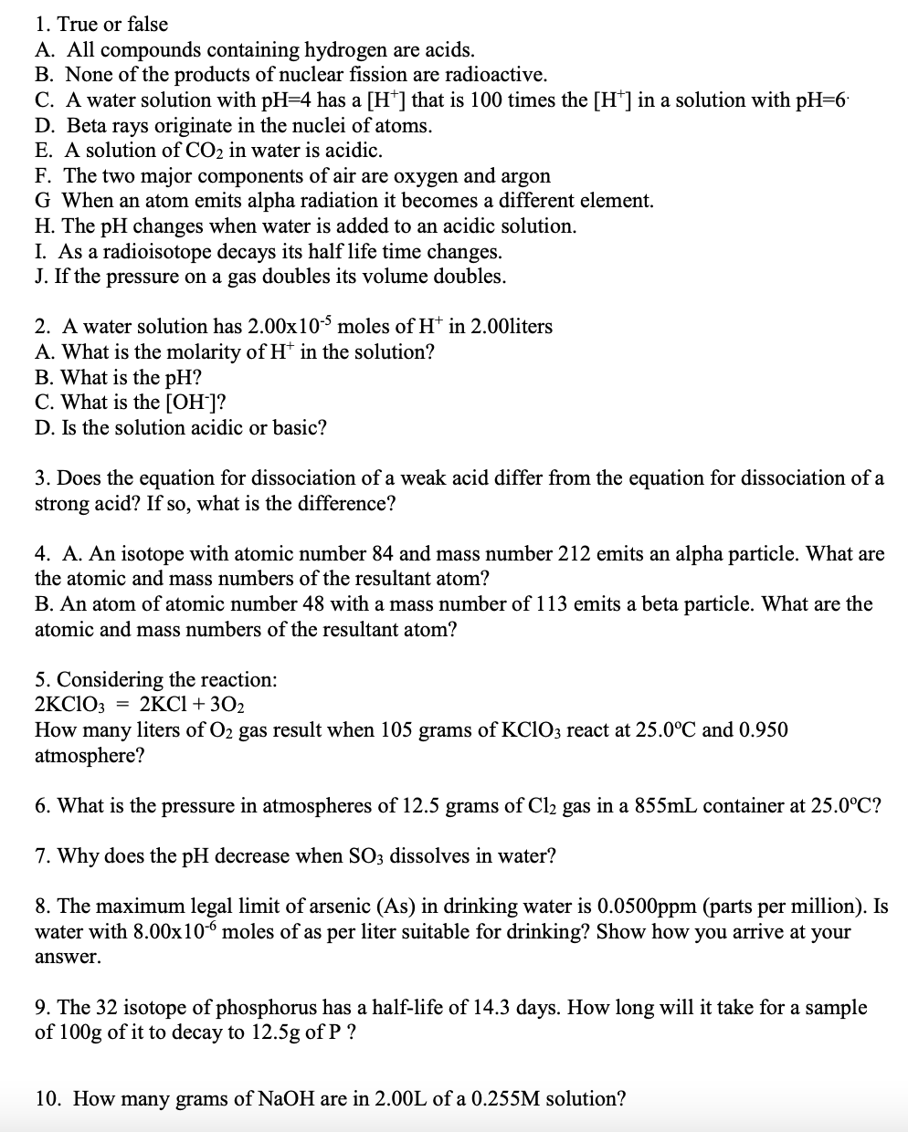 1. True or false A. All compounds containing hydrogen are acids. ...