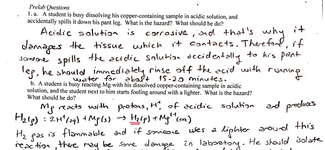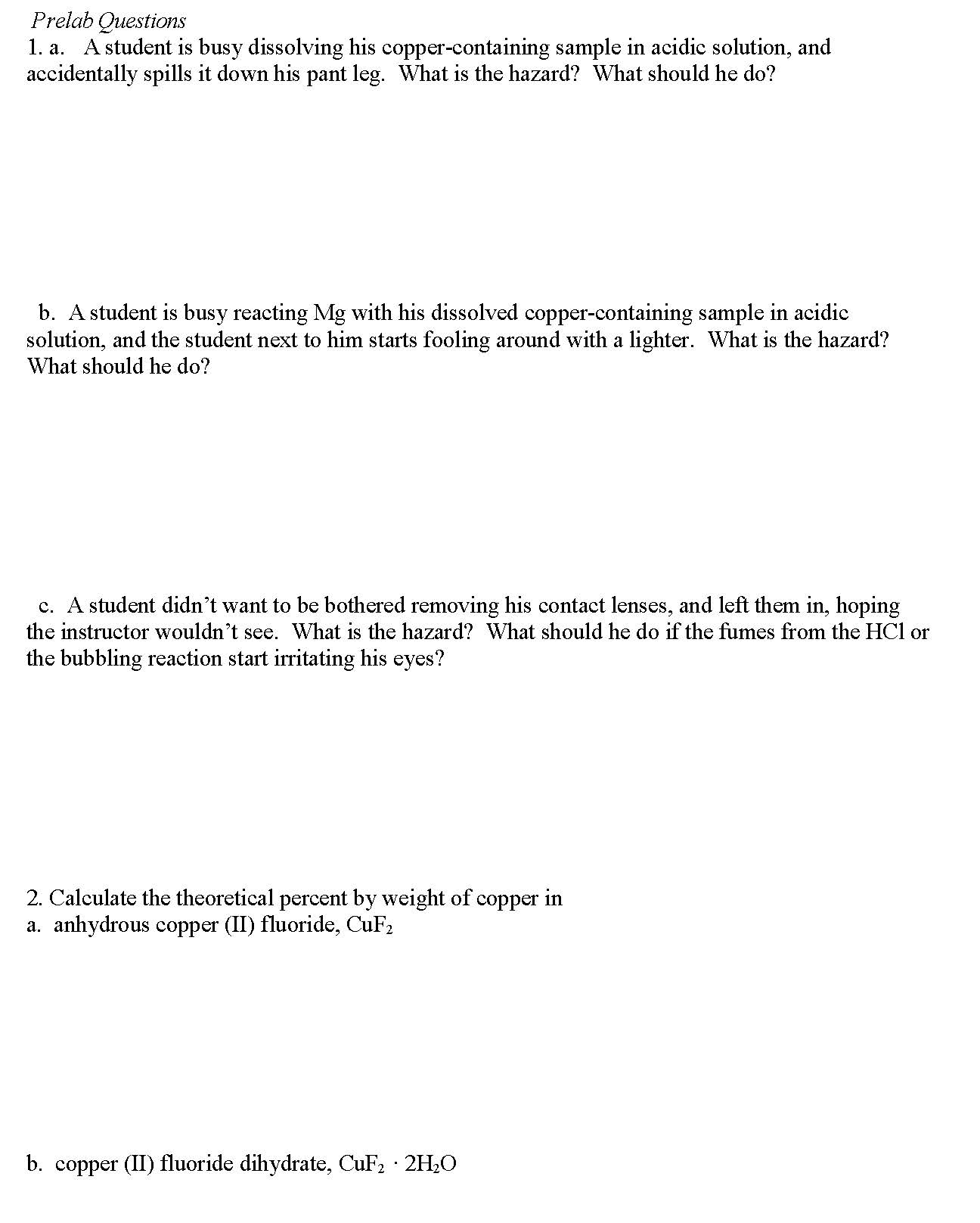 Prelab Questions 1. a. A student is busy dissolving his copper-con...