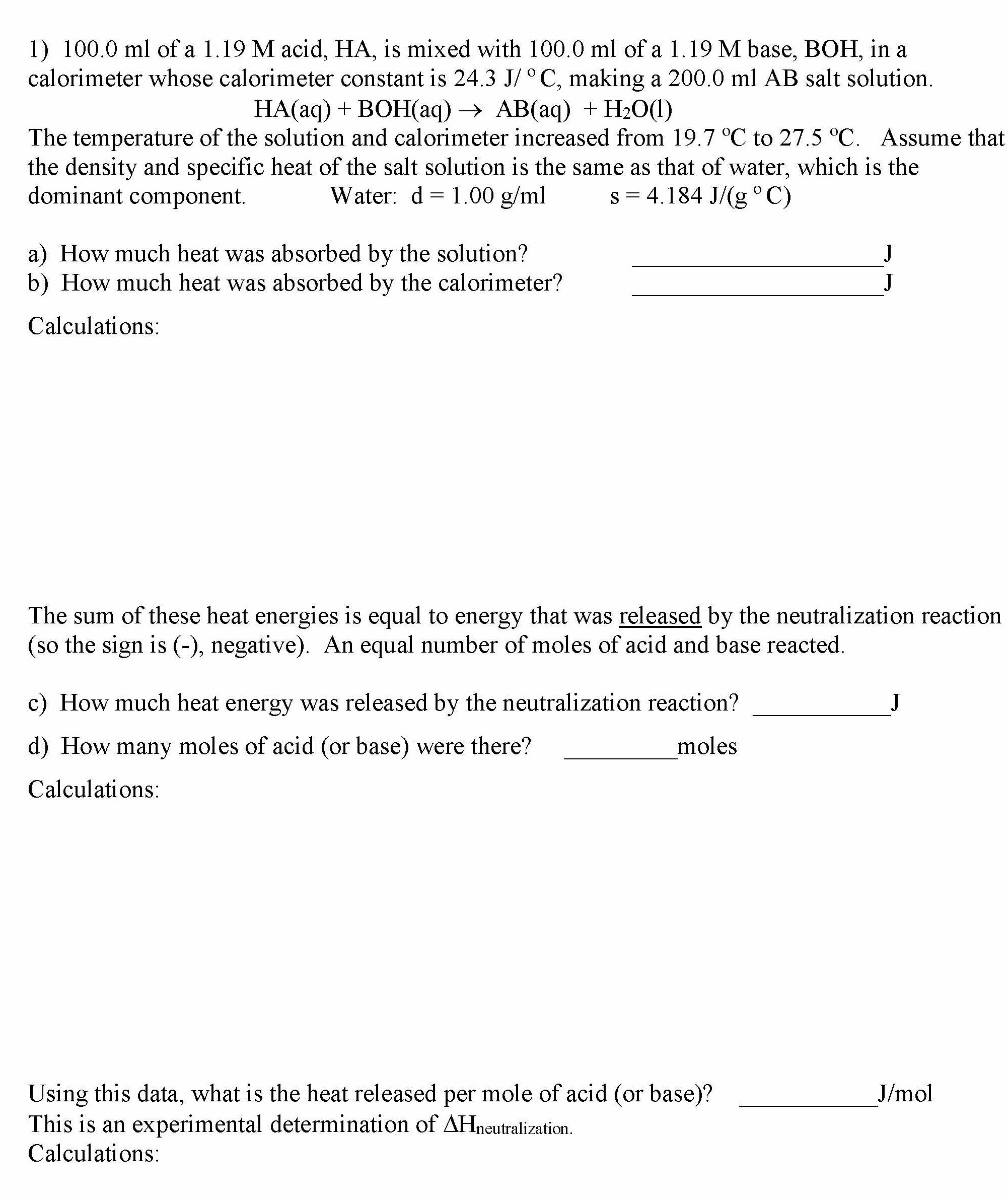 1) 100.O ml of a 1.19Macid.HA is mixed with 100.0 ml of a 1.19Mbase...