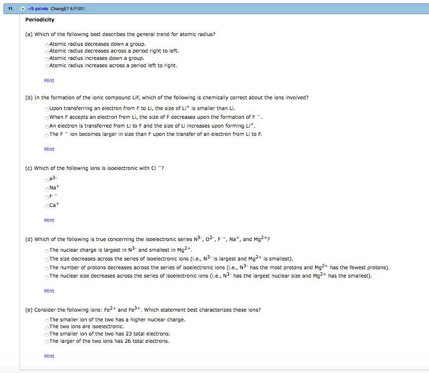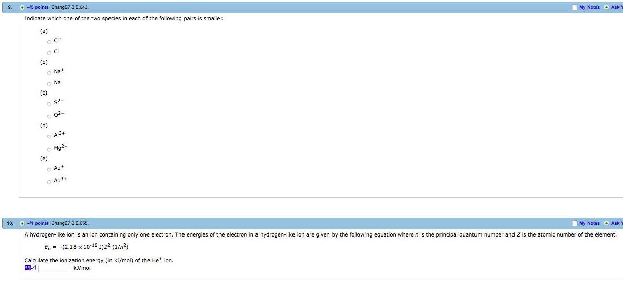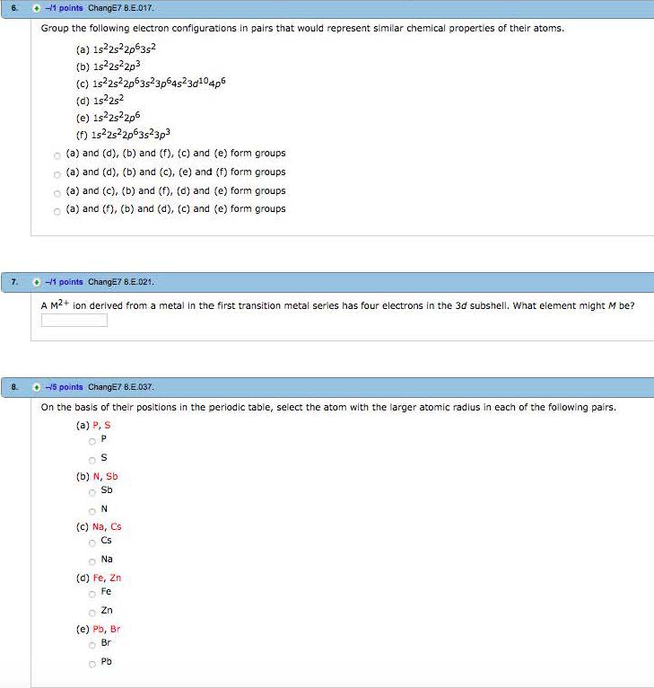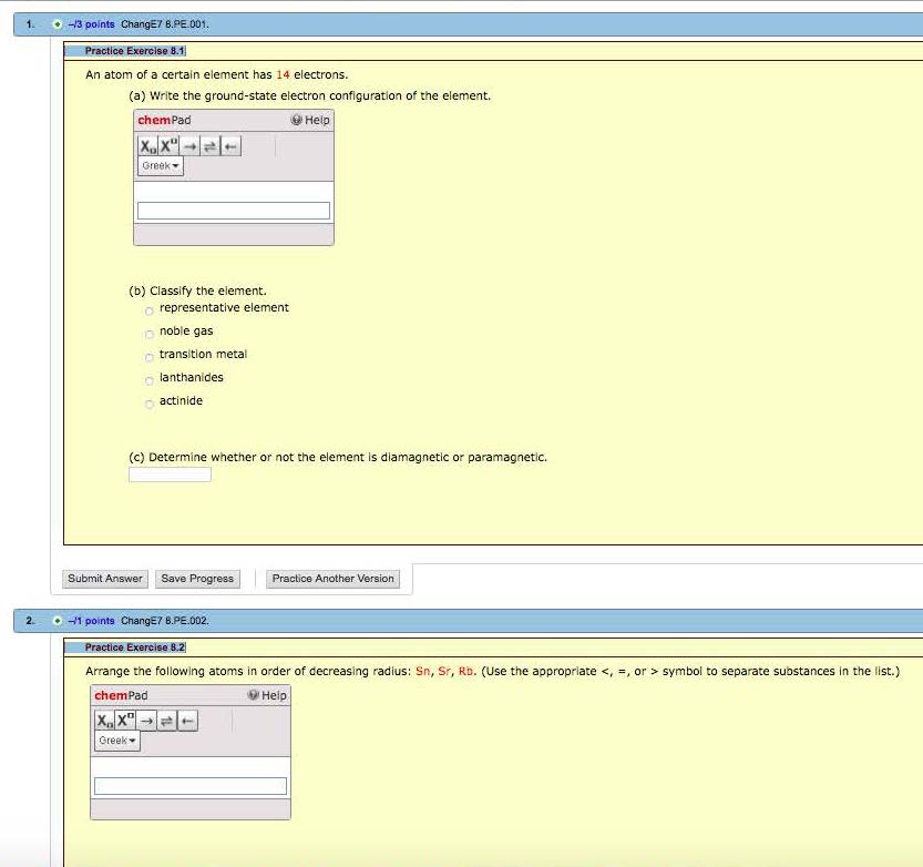1. -13 points ChangE7 B.PE.001. Practice Exercise 8.1 An atom of...