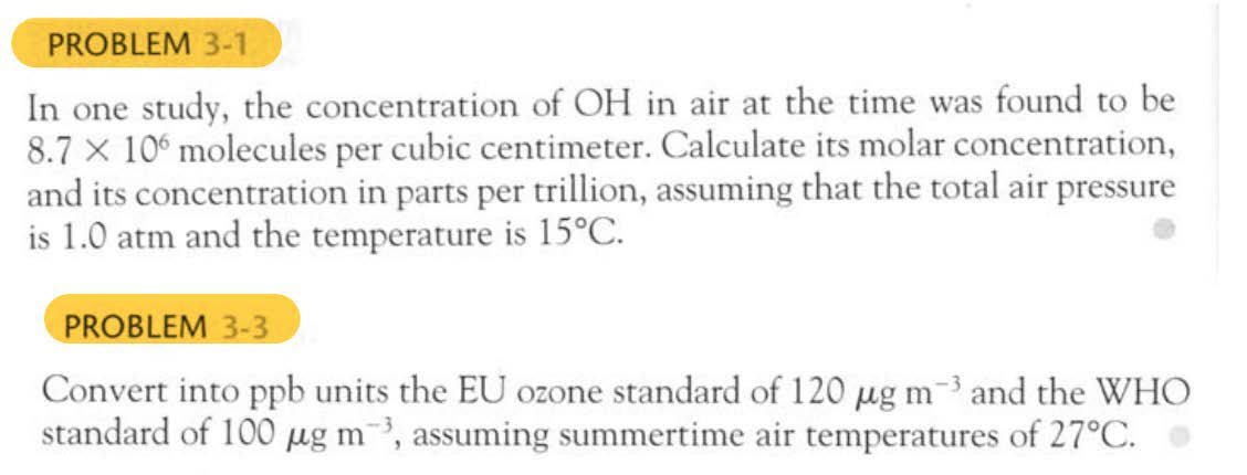 PROBLEM 3-1 In one study, the concentration of OH in air at the ti...