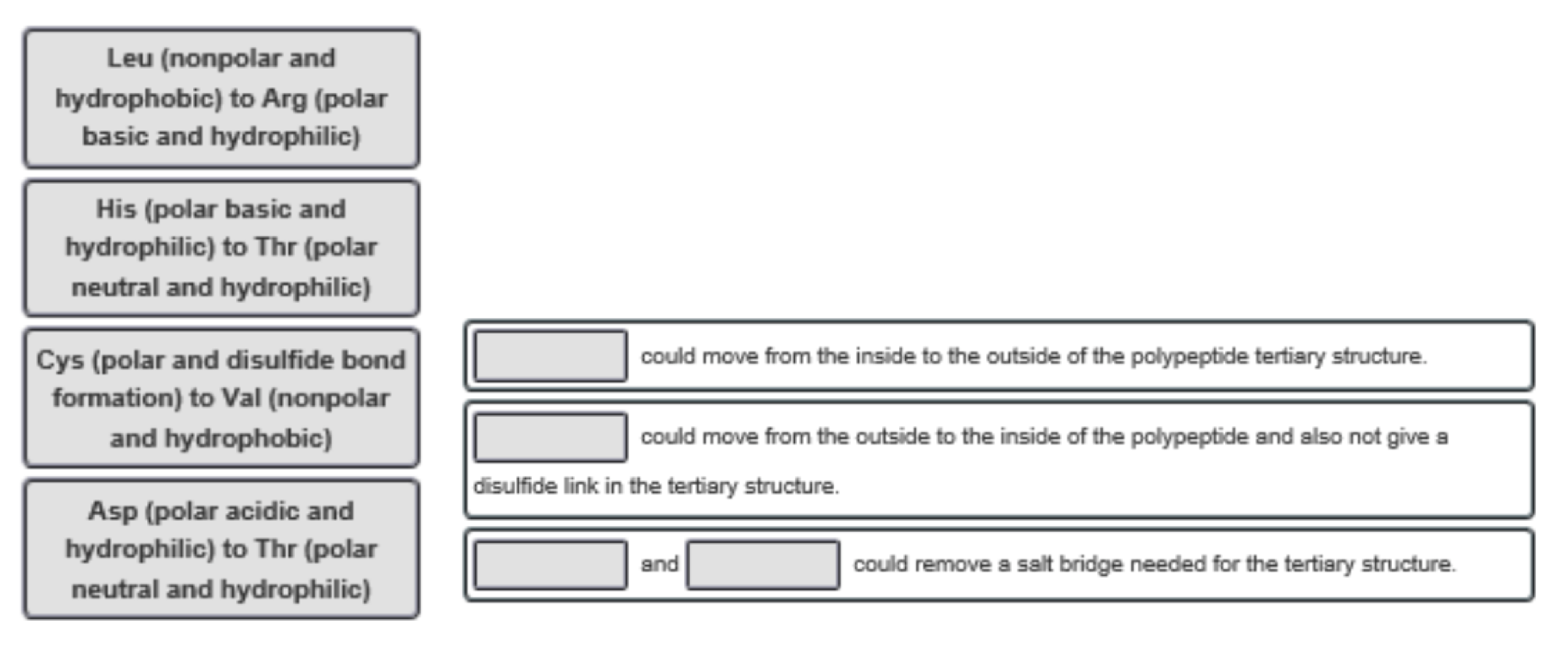 Leu (nonpolar and hydrophobic) to Arg (polar basic and hydrophili...
