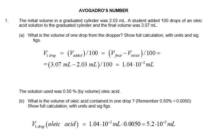 AVOGADRO'S NUMBER 1. The initial volume in a graduated cylinder...