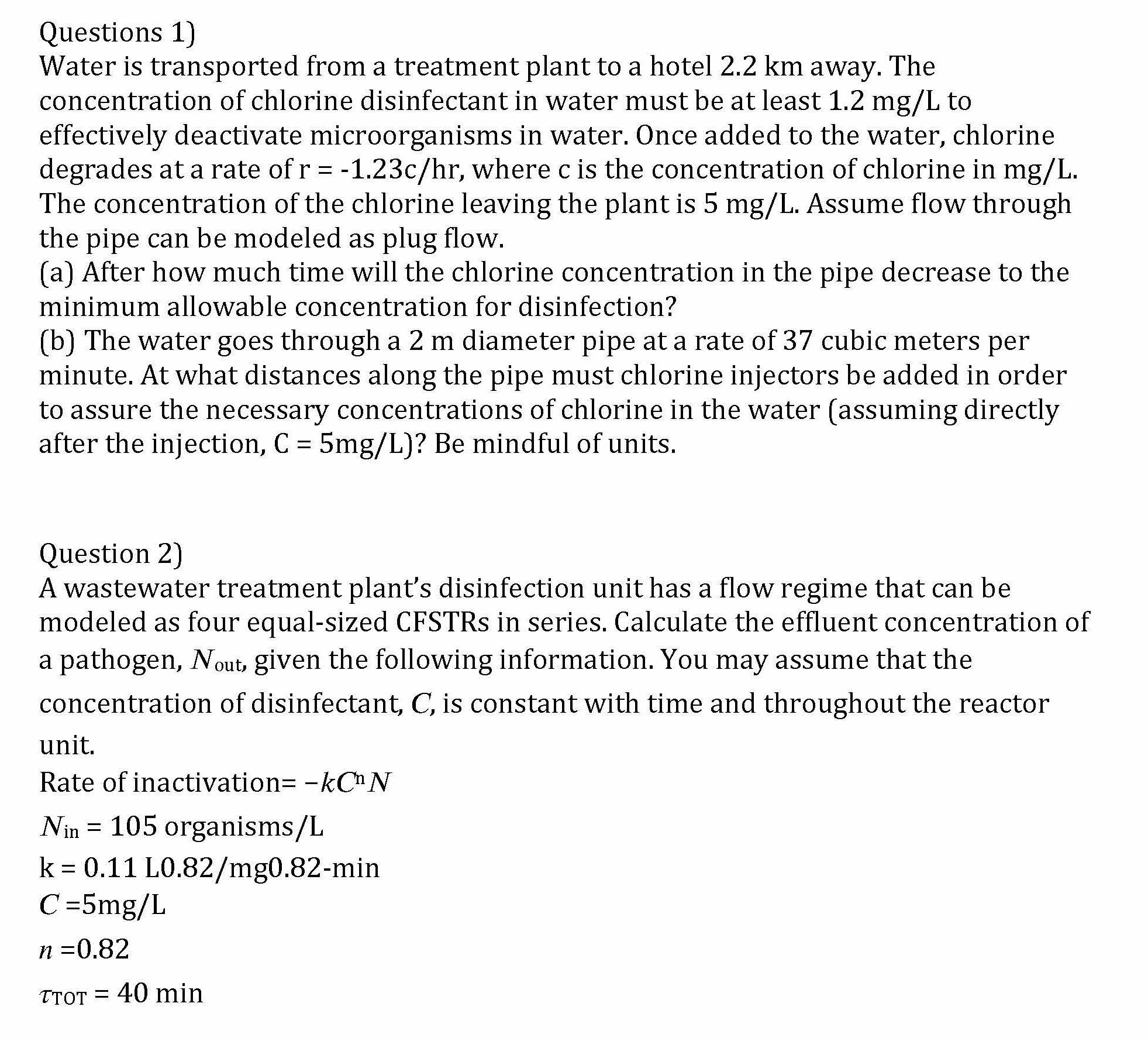 Questions ¹ Water is transported from a treatment plant to a ho...