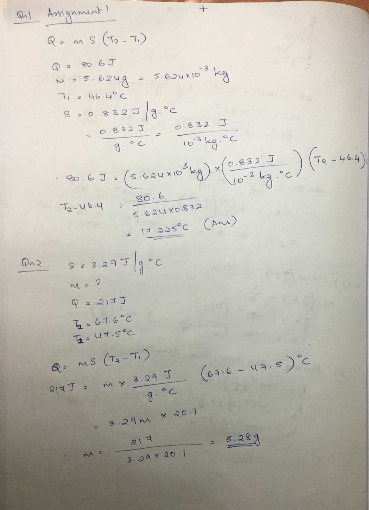 1.If 80.6 J of heat energy are added to 5.624 g of a liquid at 46.4...