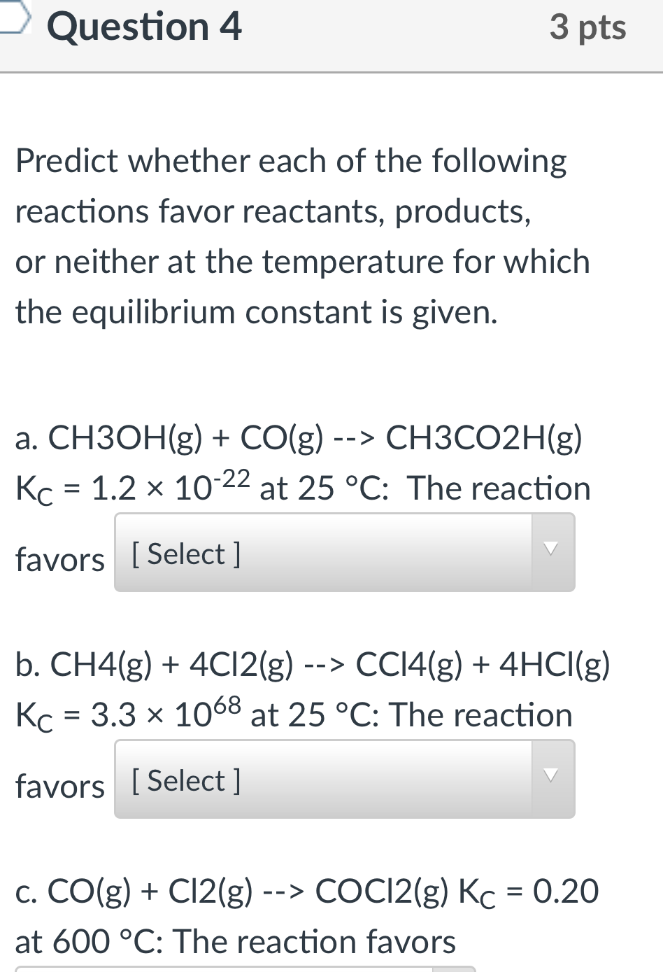 Question 4 3 pts Predict whether each of the following reactions...