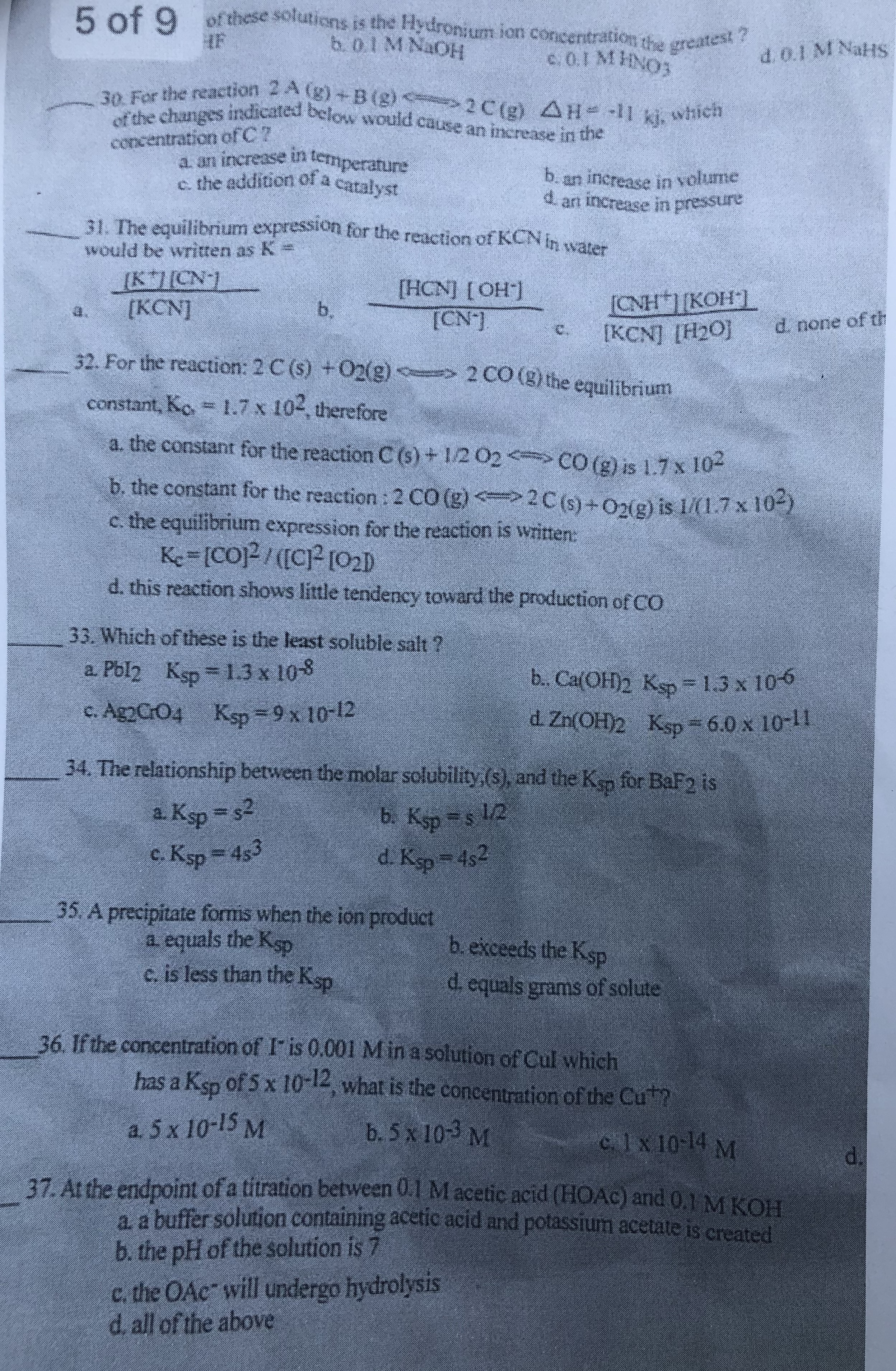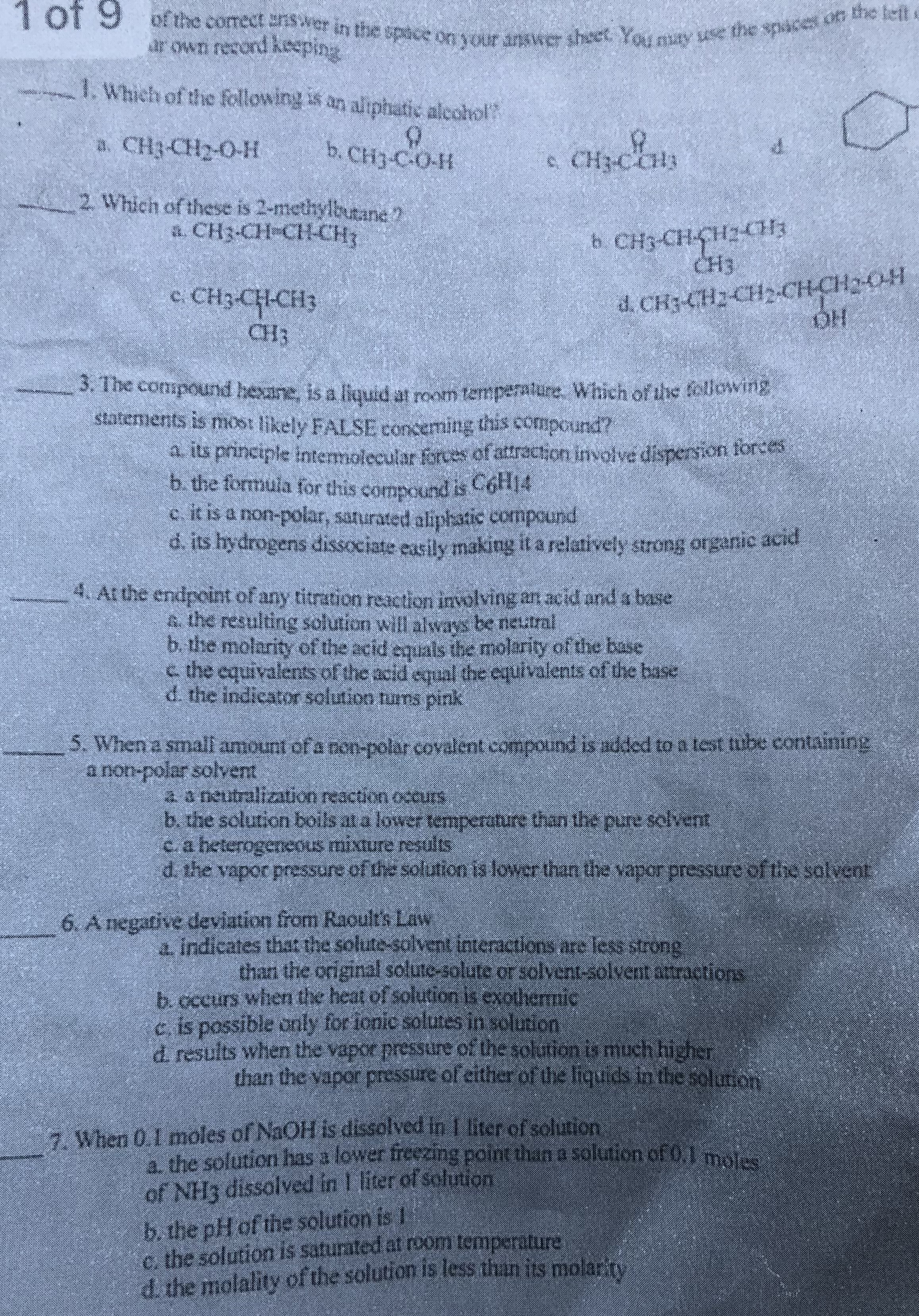 1 of 9 of the correct answer in the spoce on ) our answer sheet Yo...