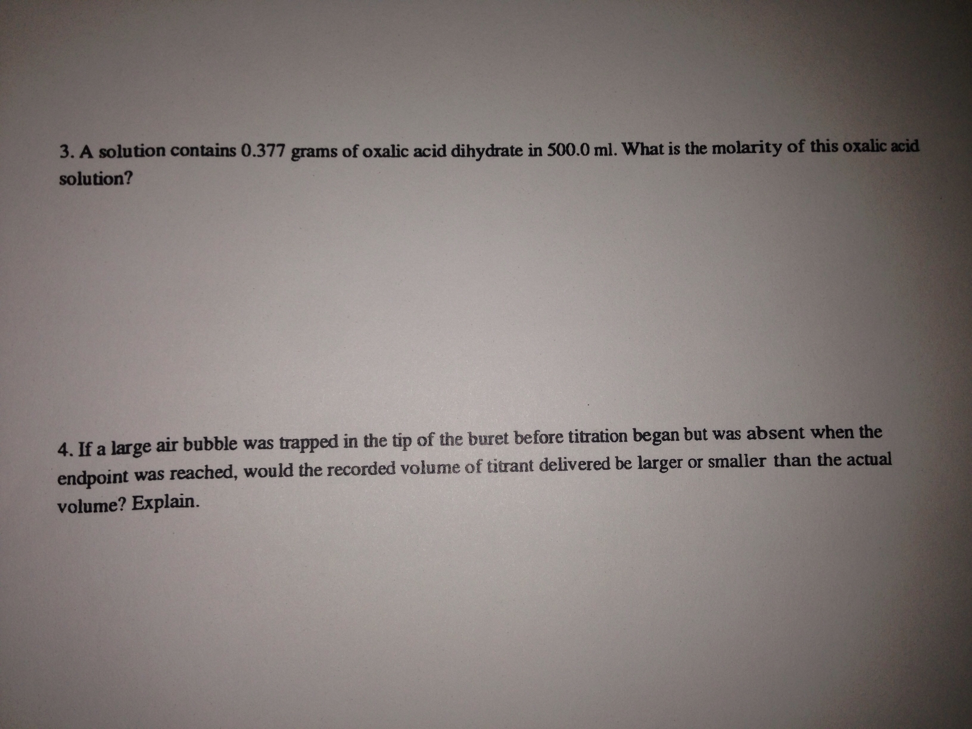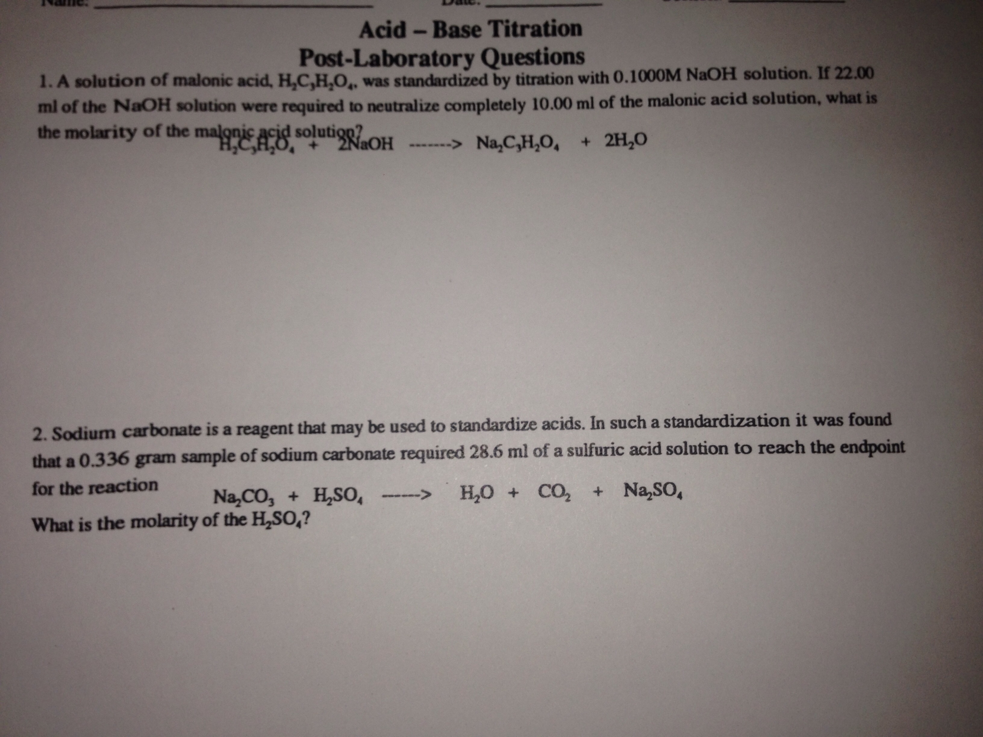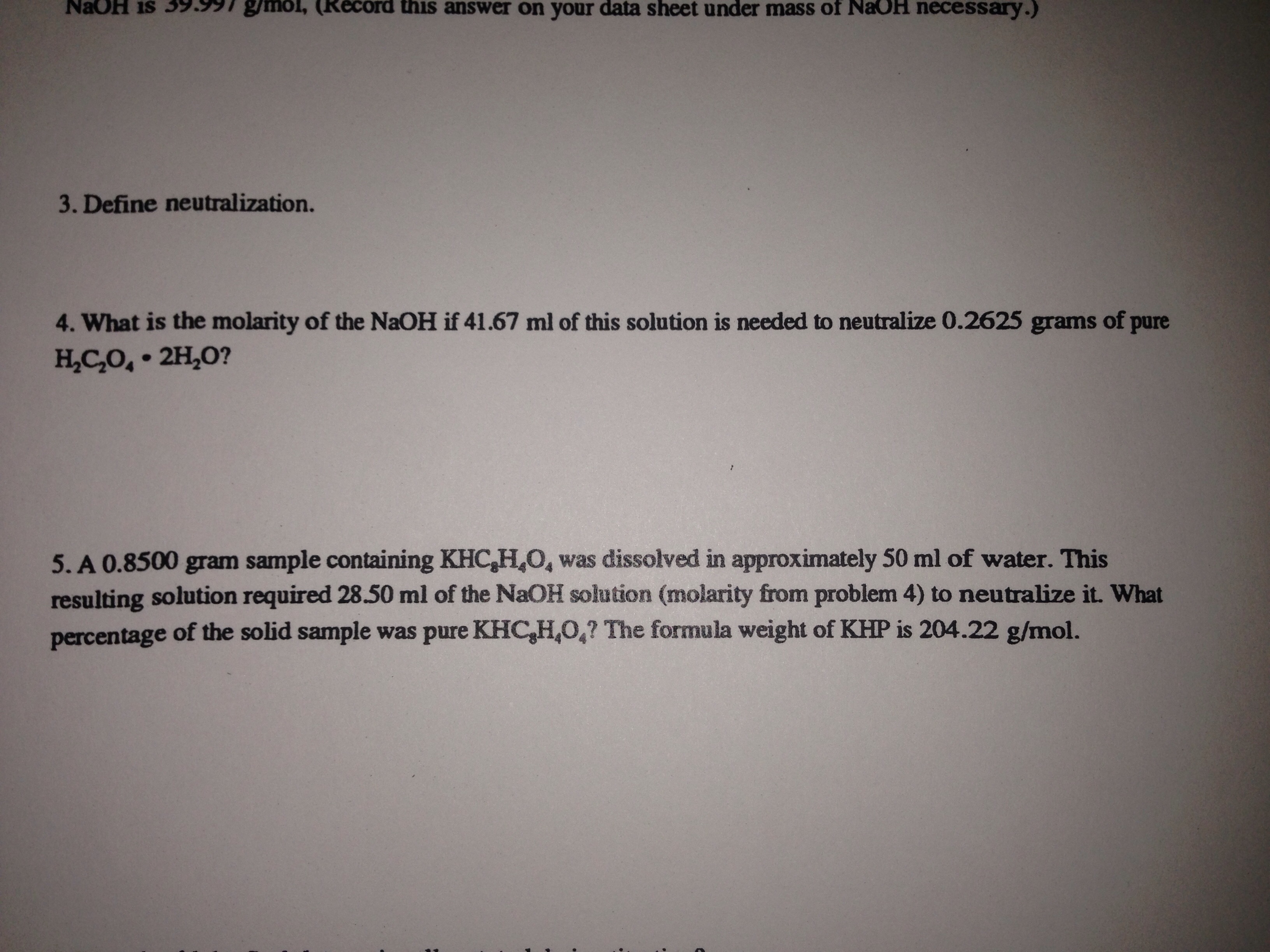 undel un " 3. Define neutralization. 4. What is the molarity...