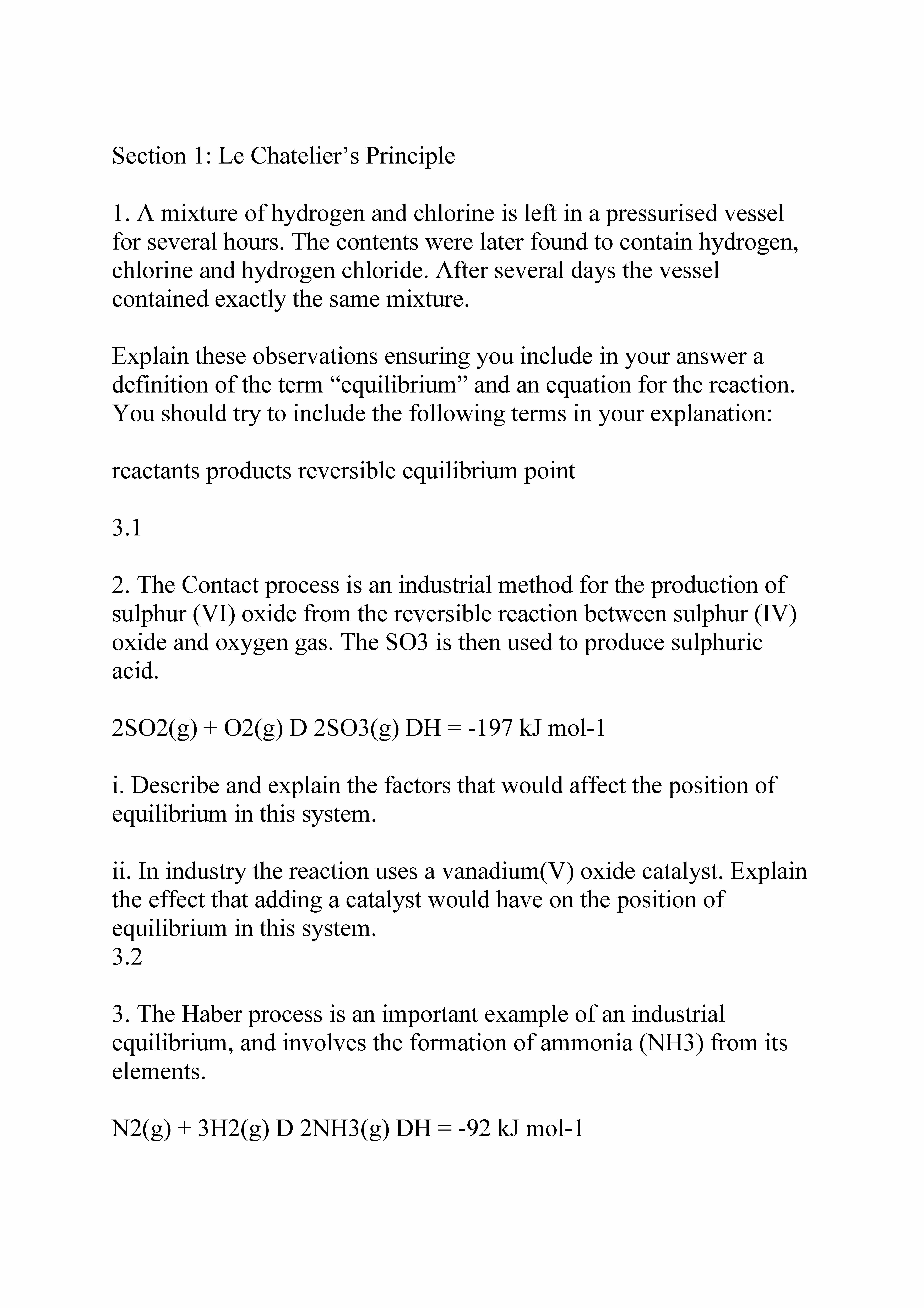 Section 1: Le Chatelier’s Principle 1. A mixture of hydroge...