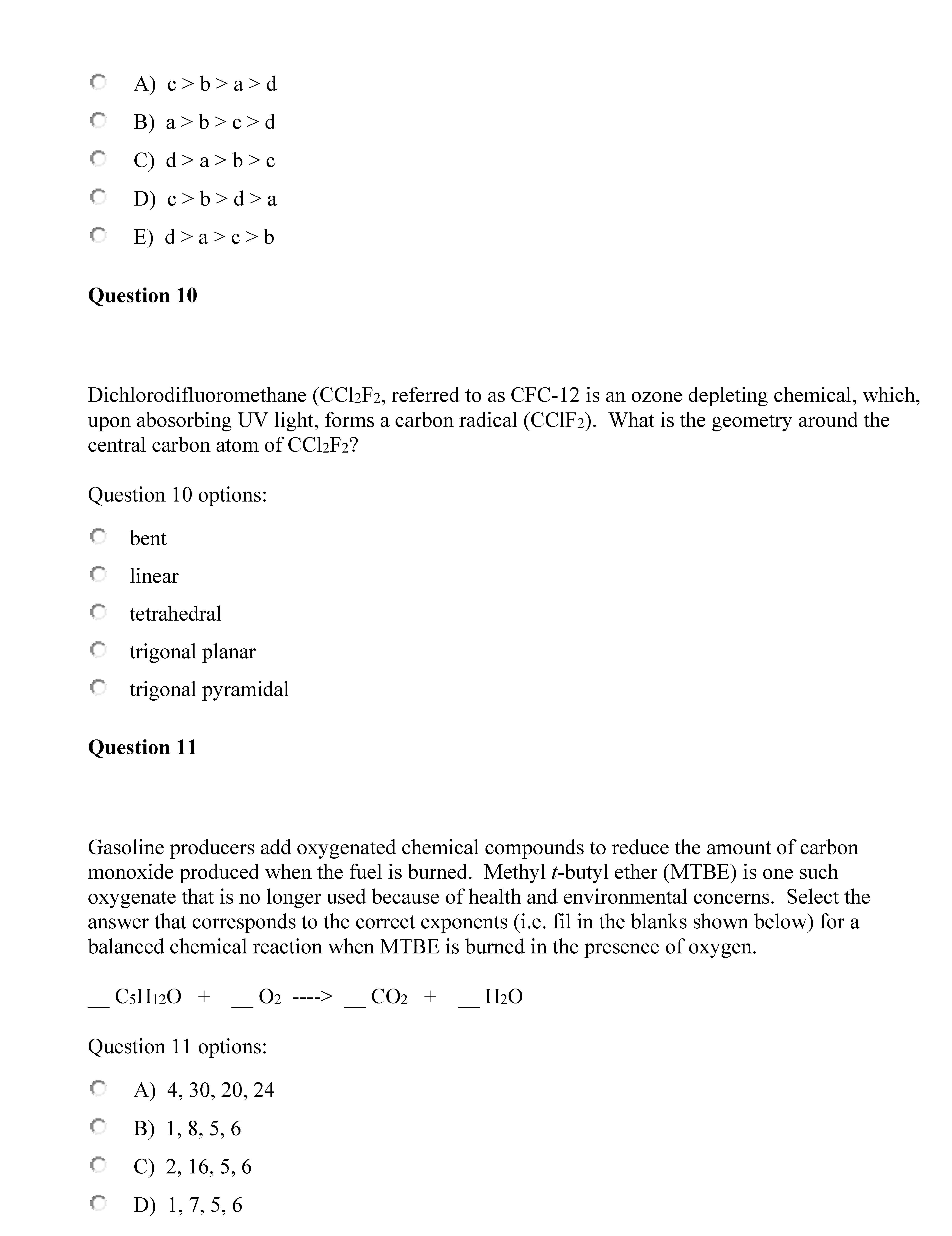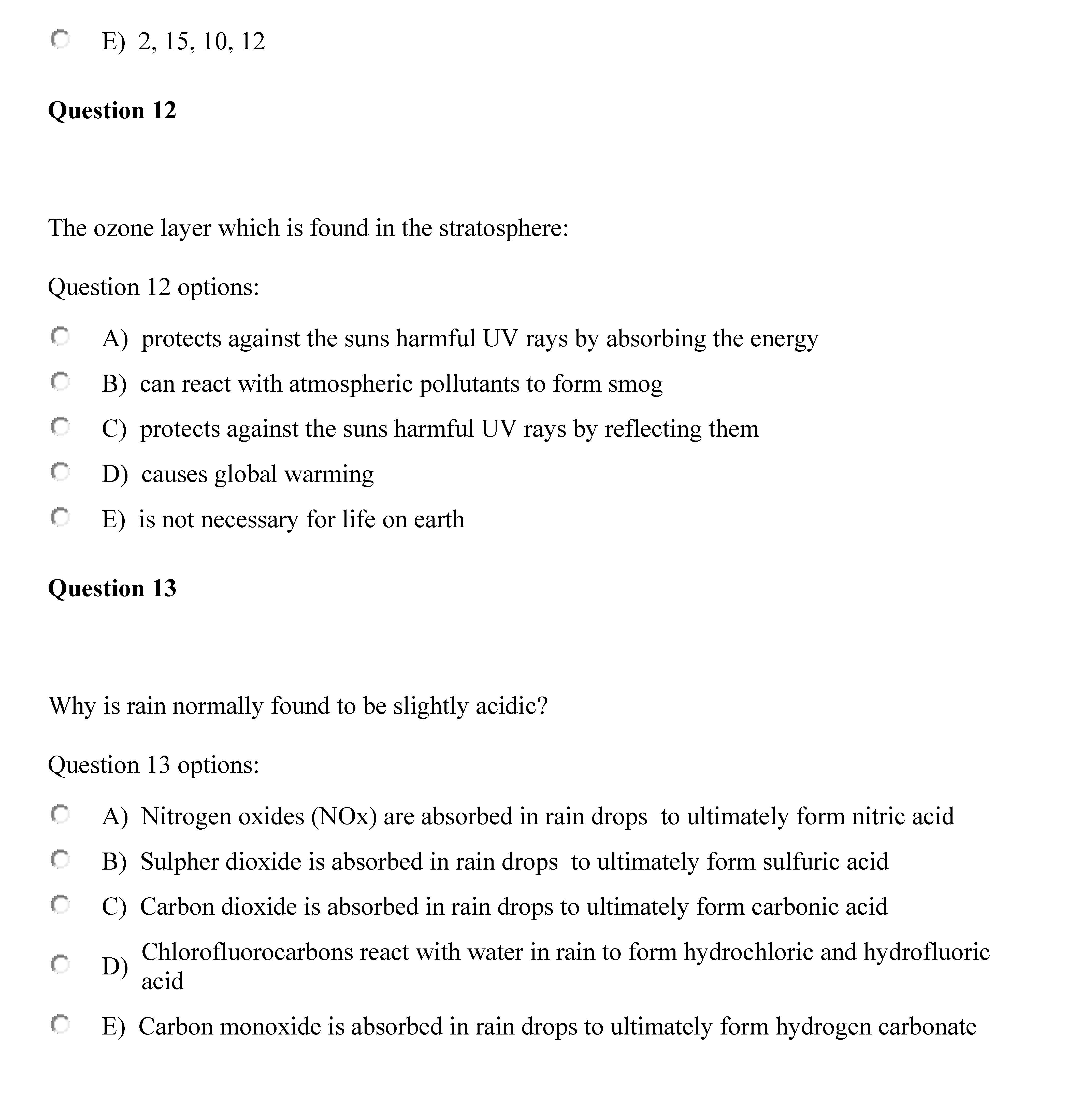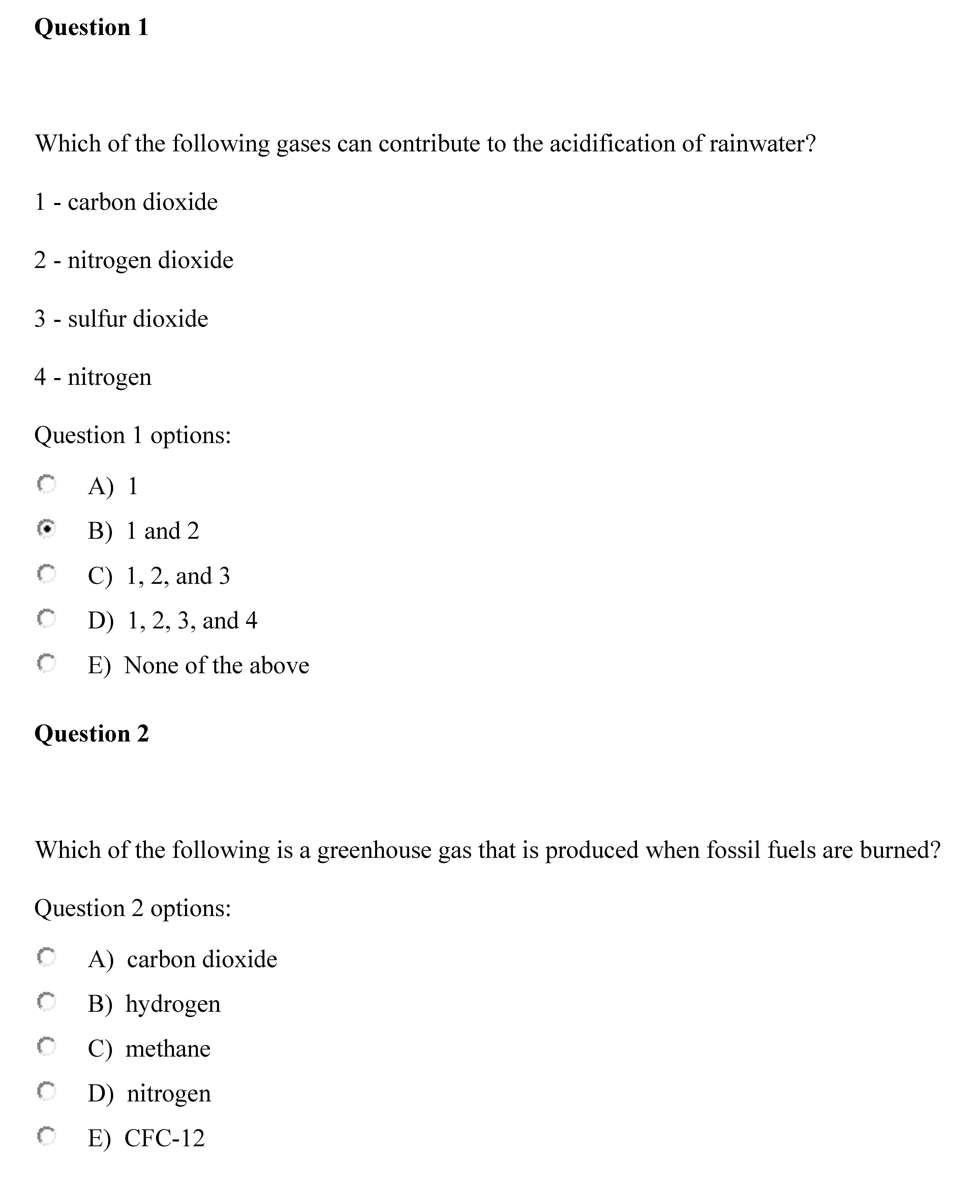 Question 1 Which of the following gases can contribute to the acid...
