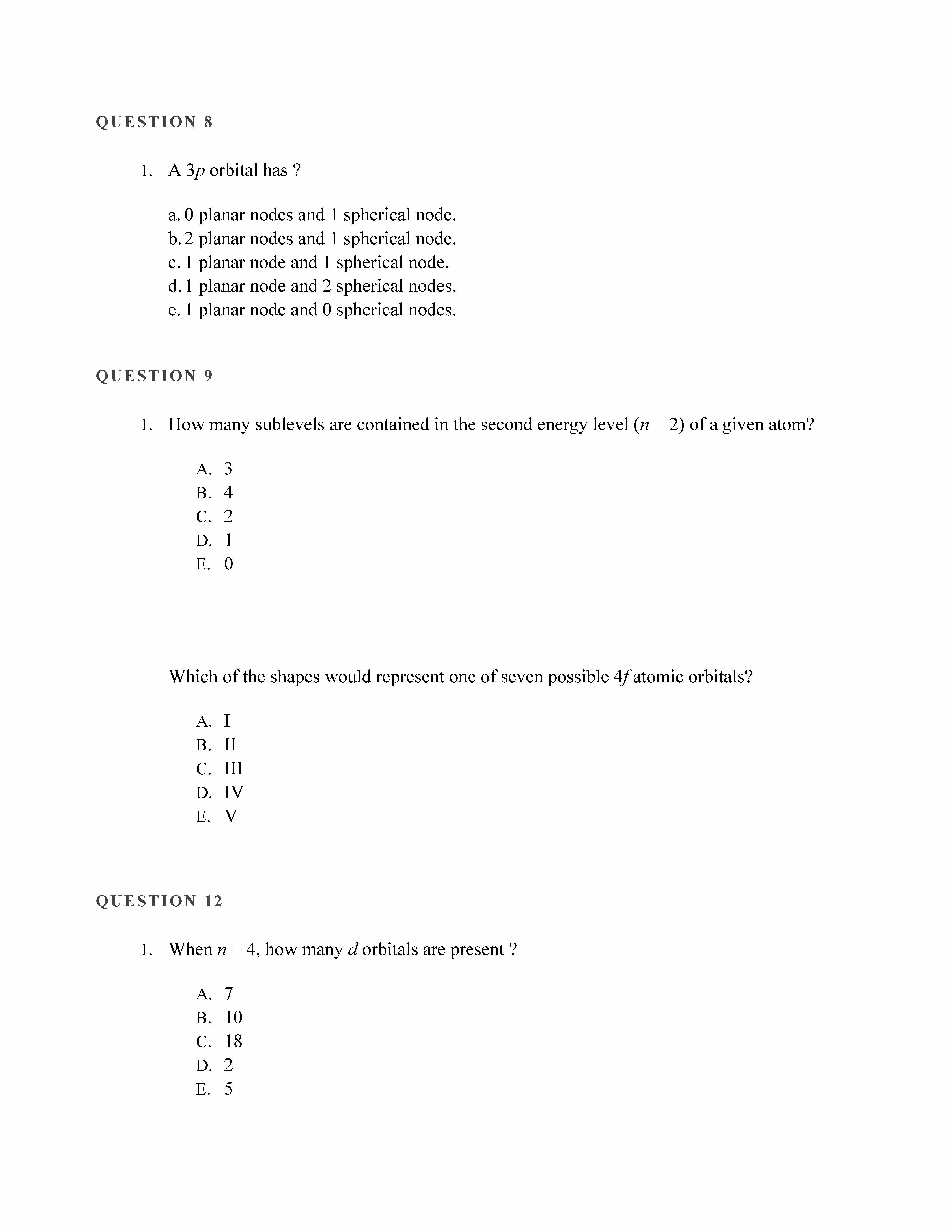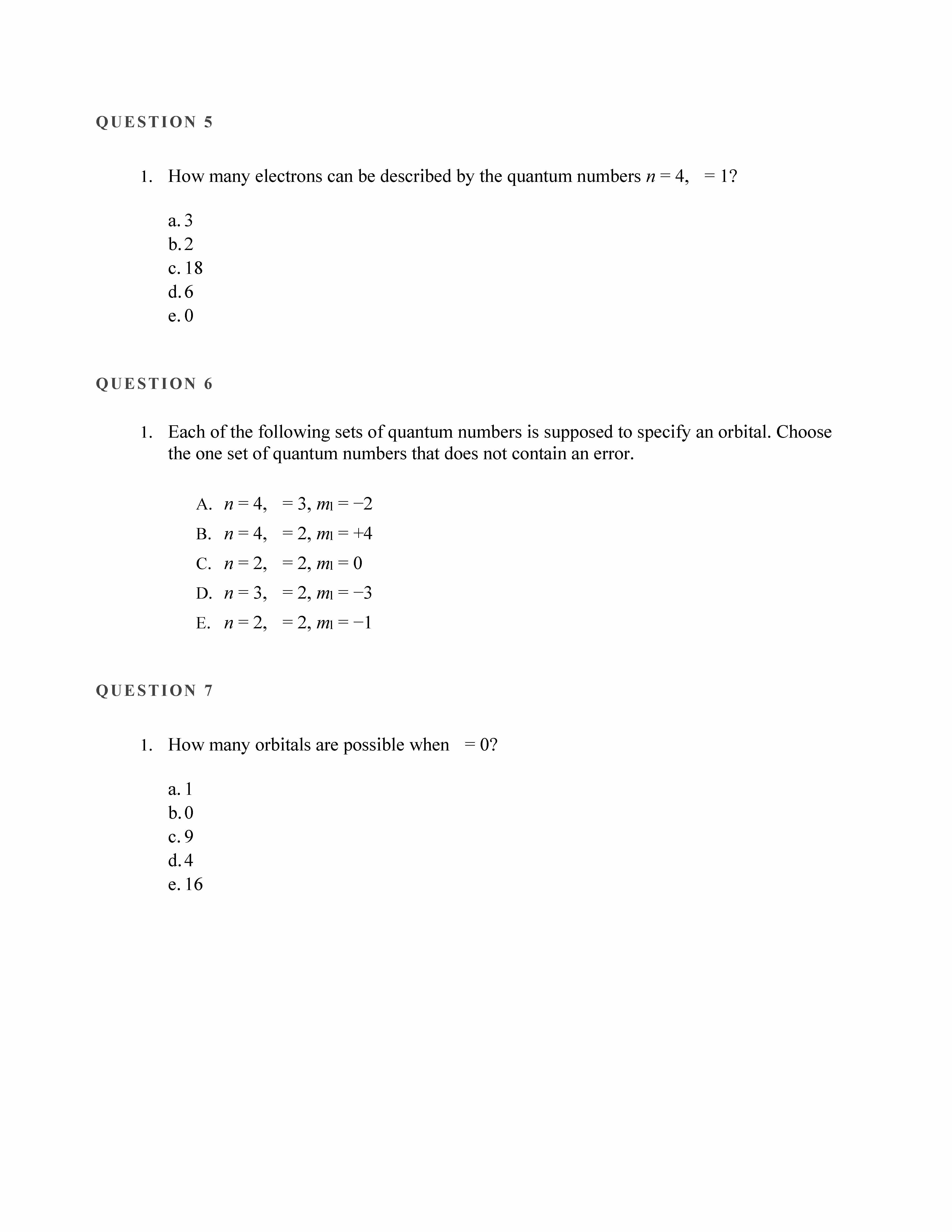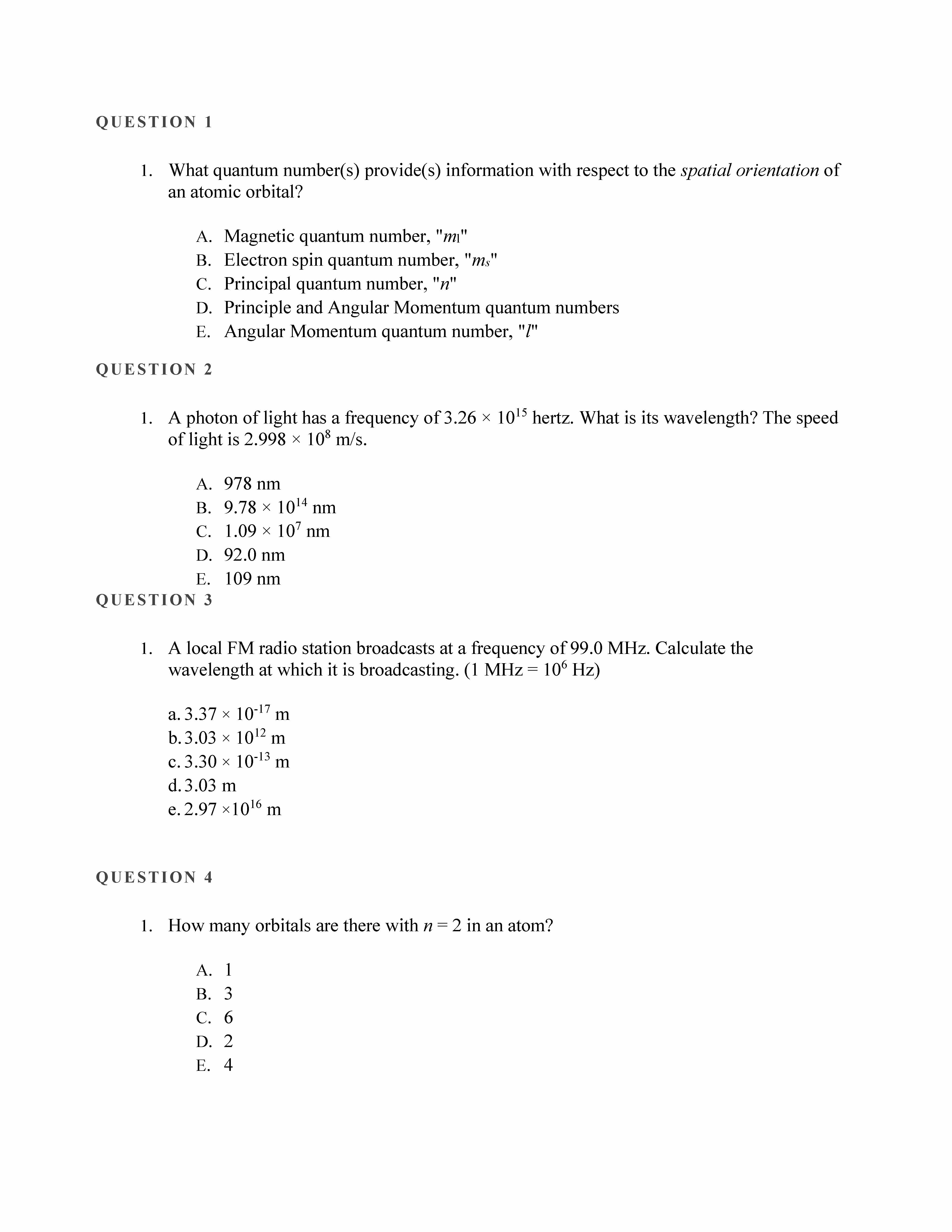 QUESTION 1 1. What quantum number(s) provide(s) information with r...