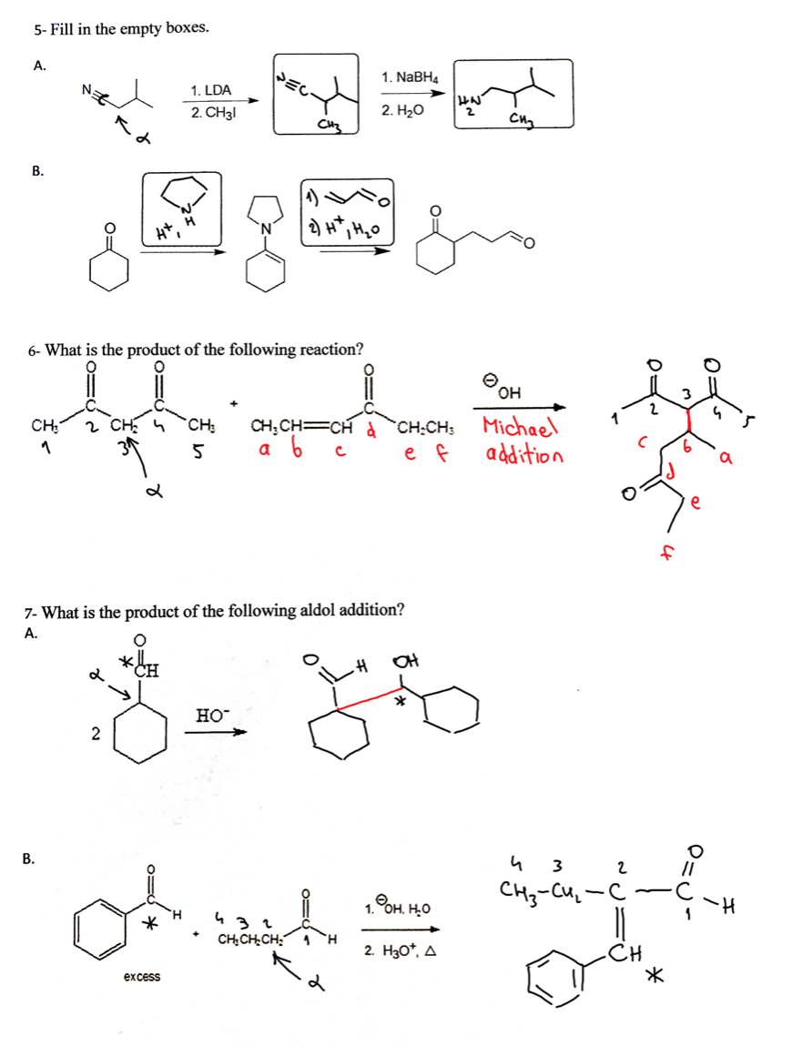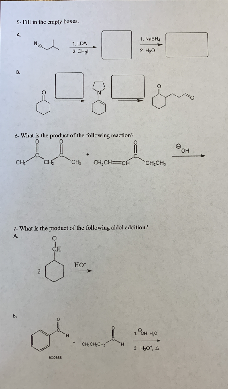 5- Fill in the empty boxes. A. 1. NaBH4 N 1. LDA 2. CH3 2. HO...