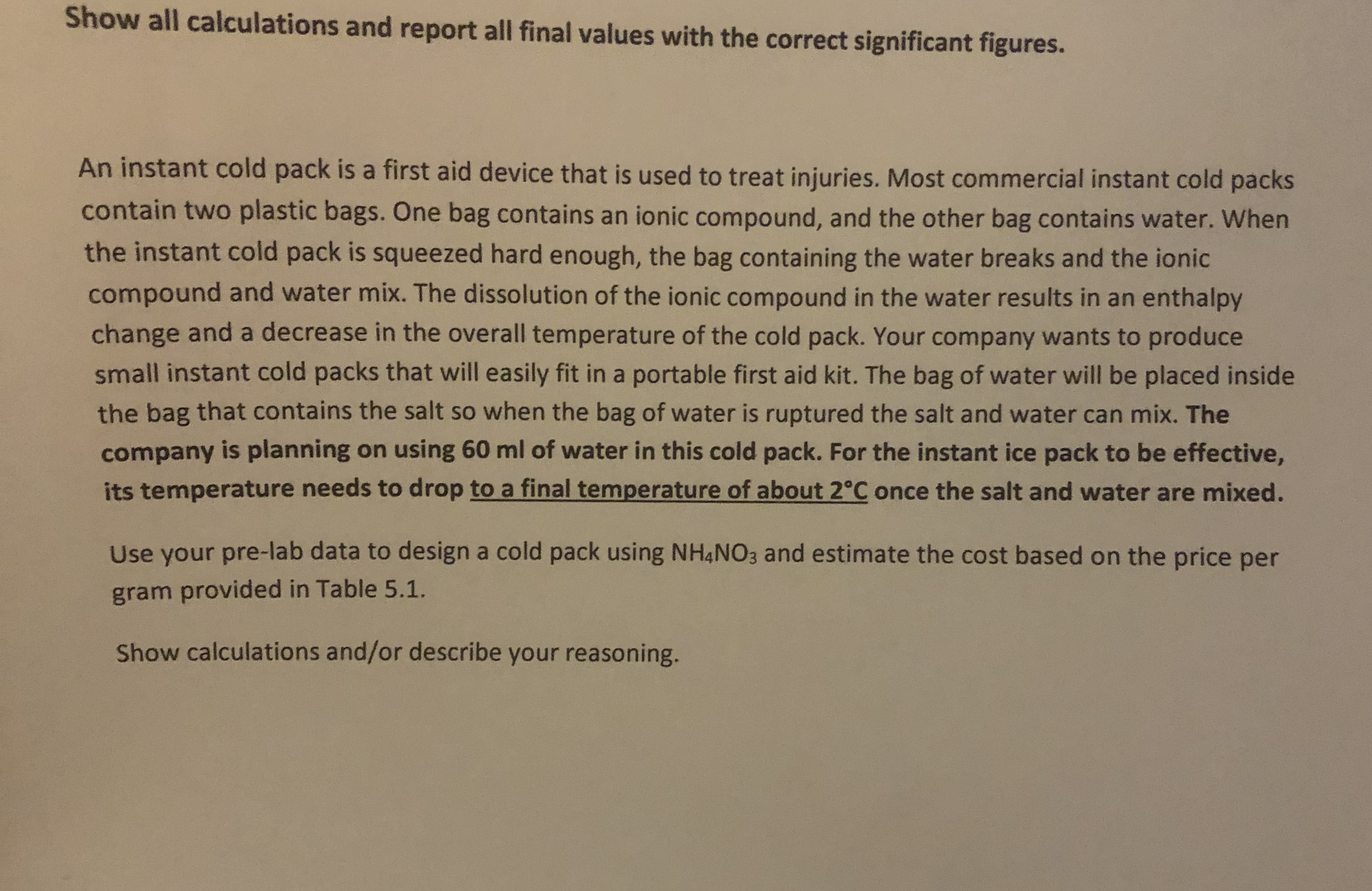 Table 5.1. Prices of salts. Salt Amount (in grams) Price NH4Cl ...