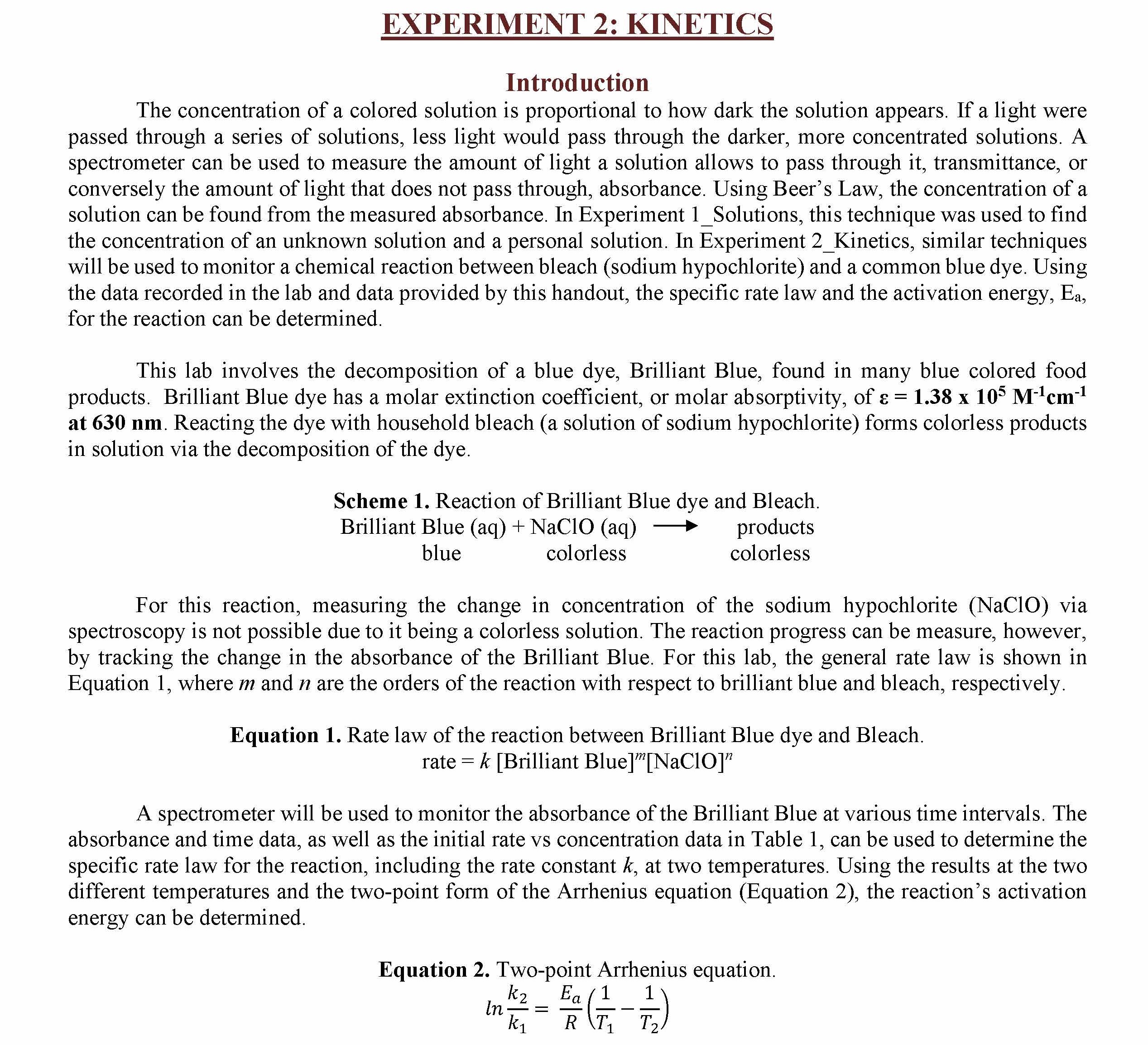 EXPERIMENT 2: KINETICS Introduction The concentration of a colore...