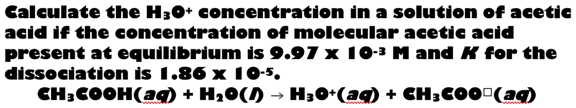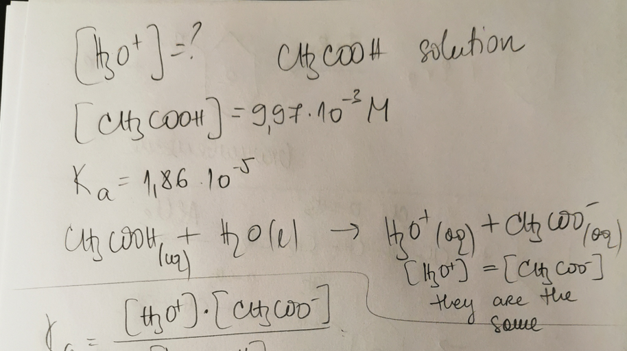 Calculate the H3O+ concentration in a solution of acetic acid if t...