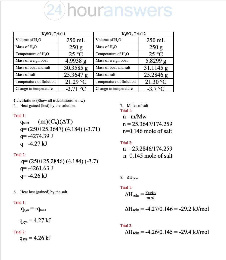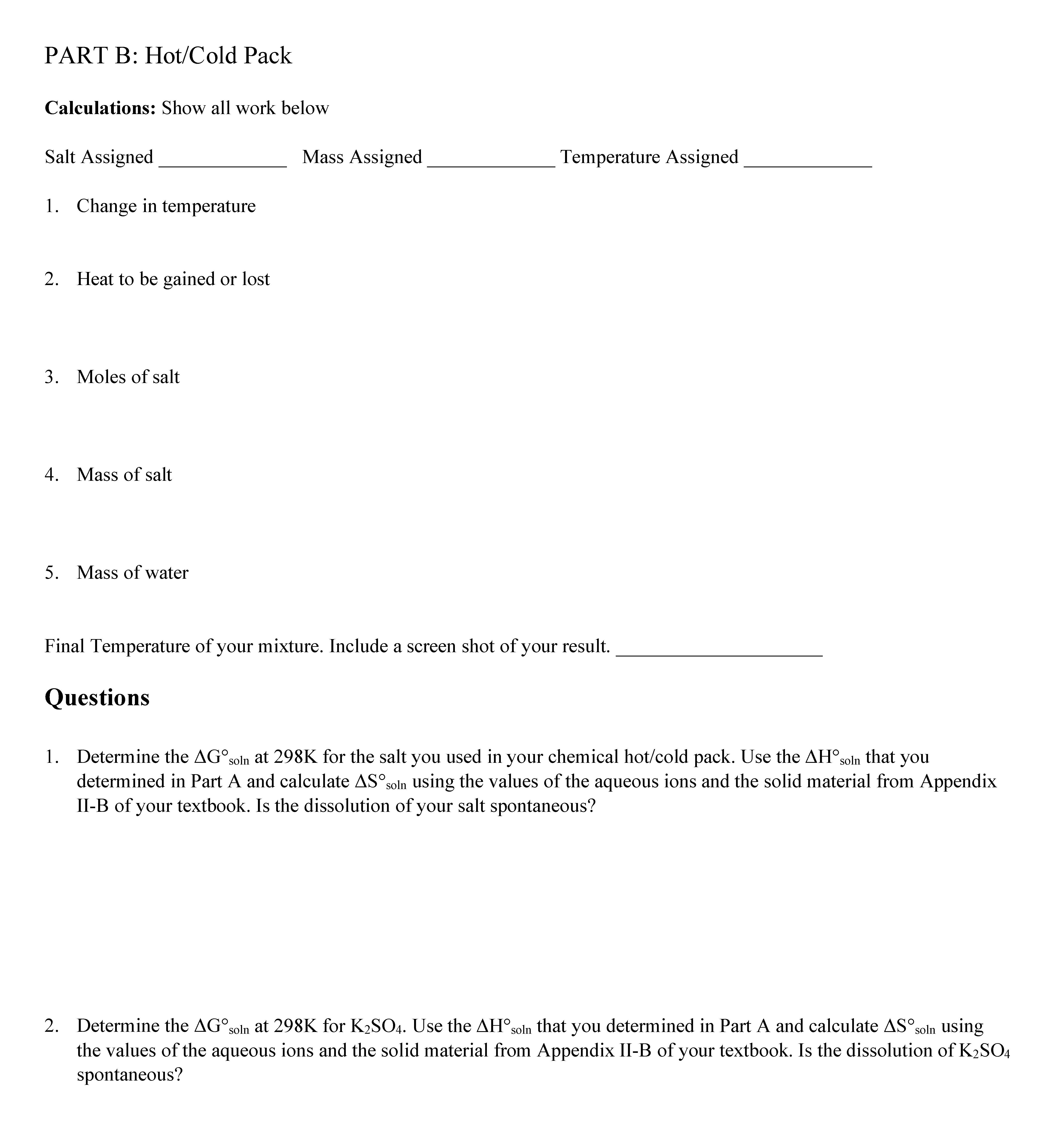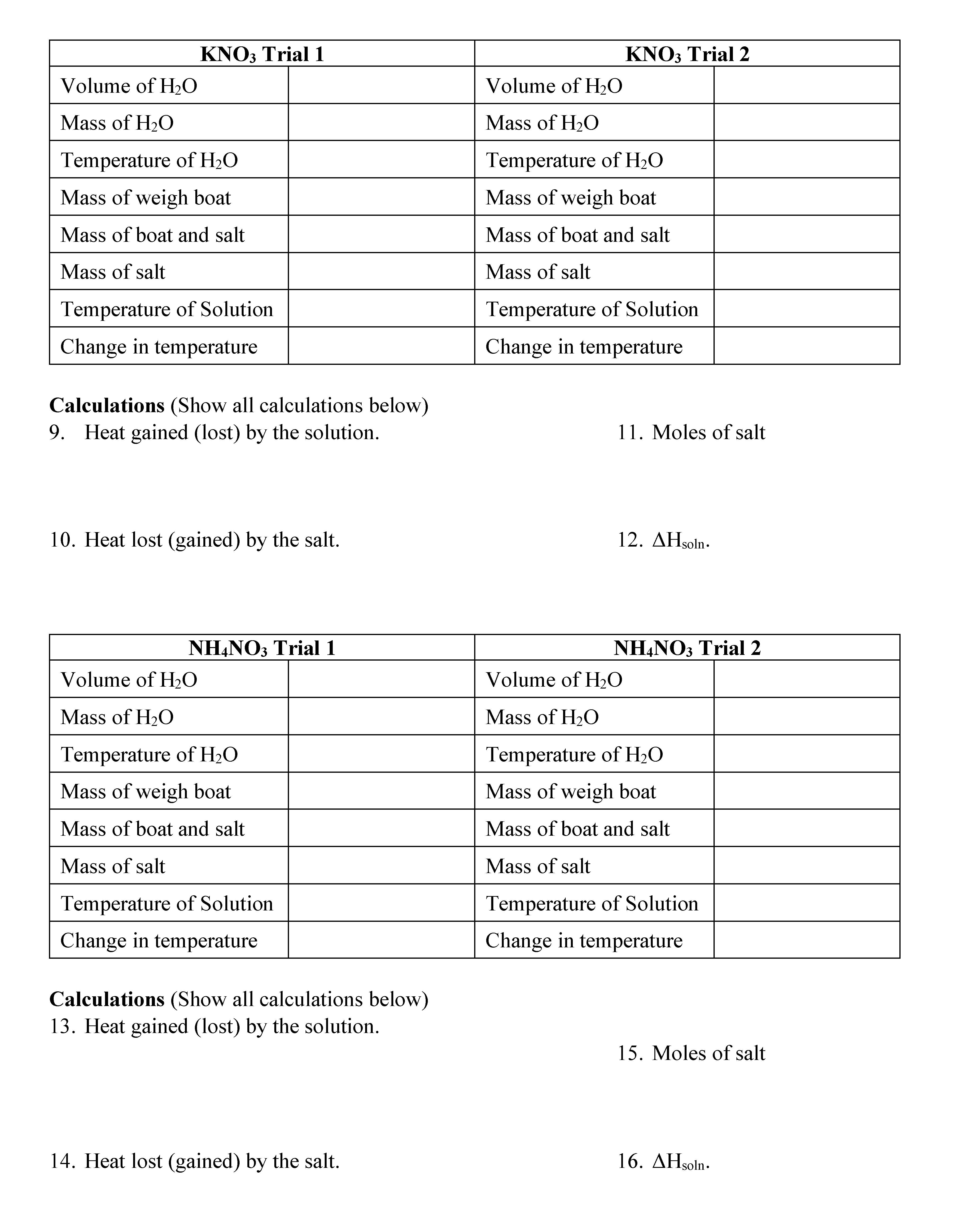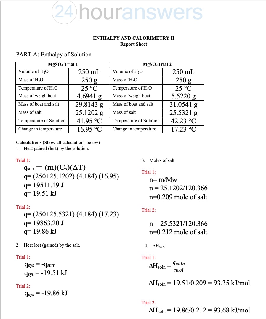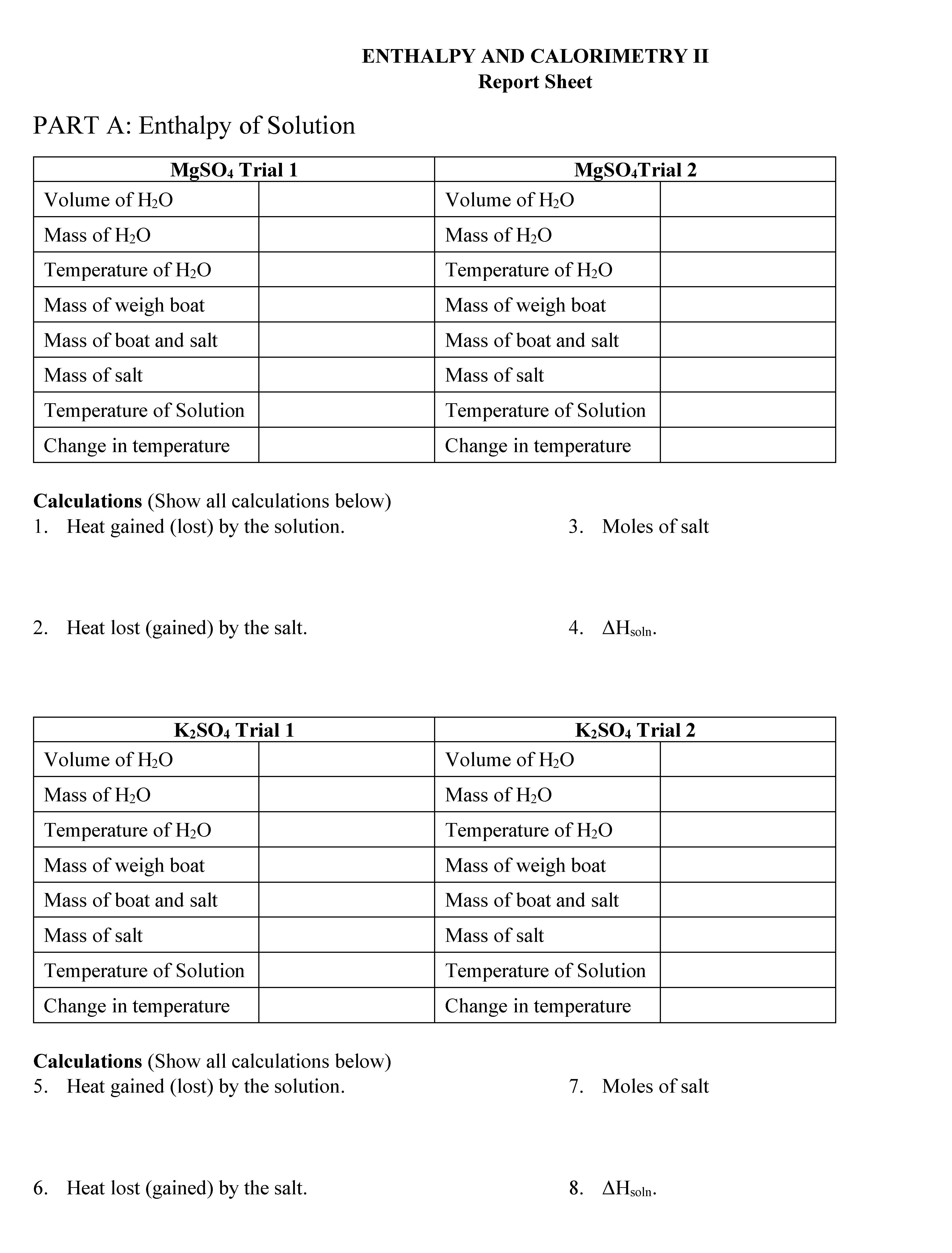 ENTHALPY AND CALORIMETRY II Report Sheet PART A: Enthalpy of Solu...
