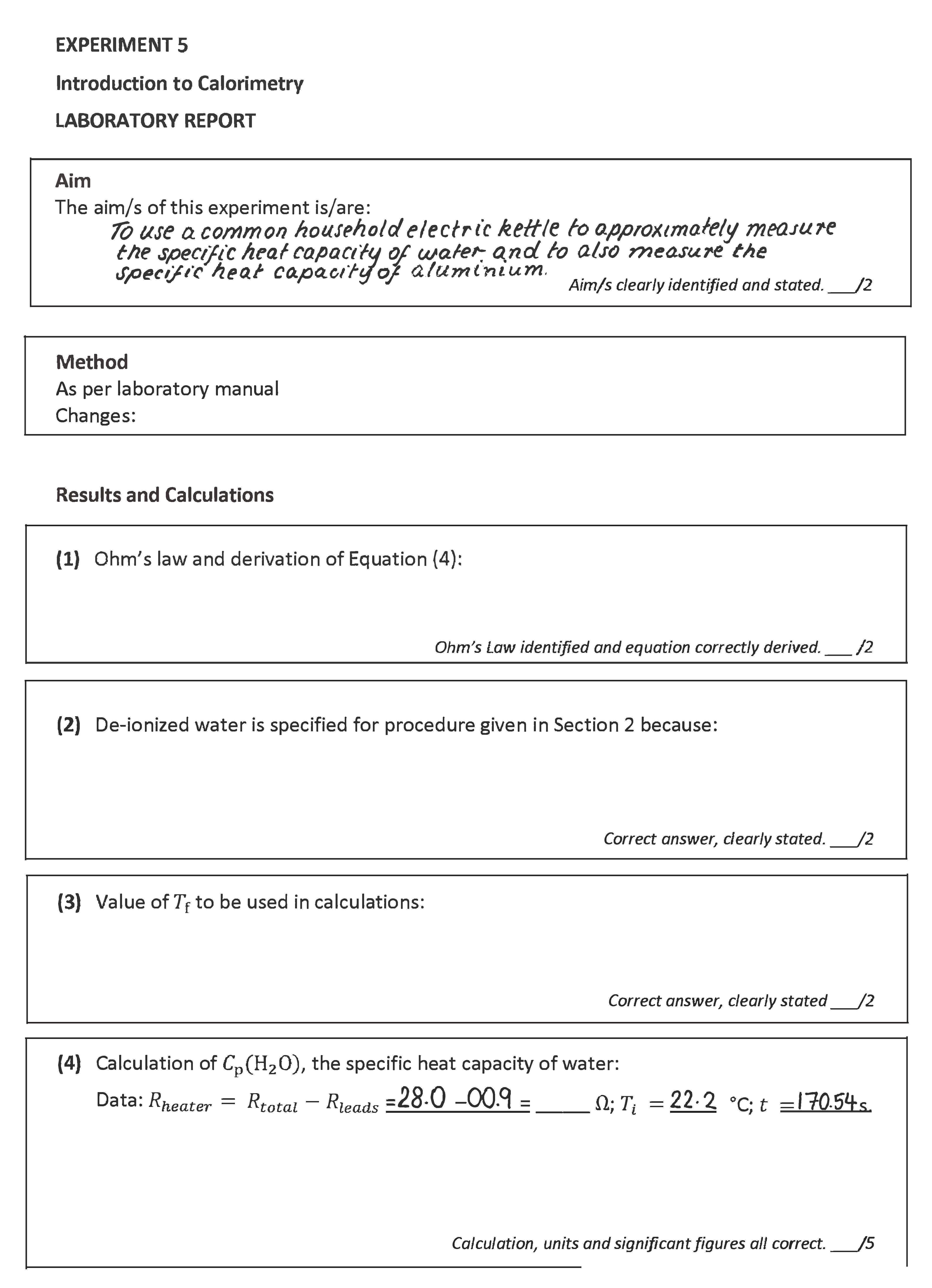 EXPERIMENT 5 Introduction to Calorimetry LABORATORY REPORT Aim ...