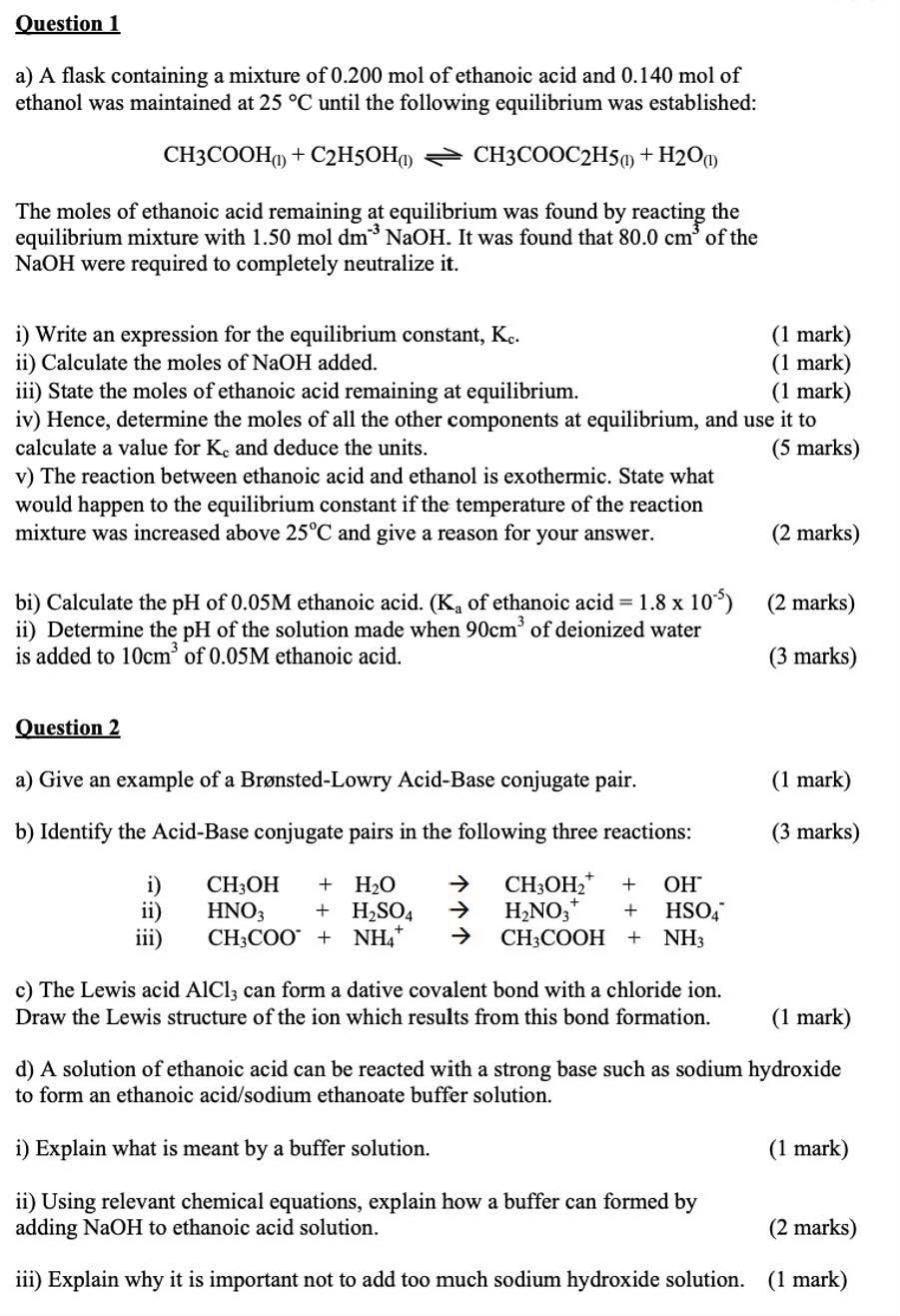 Question 1 a) A flask containing a mixture of 0.200 mol of ethanoi...