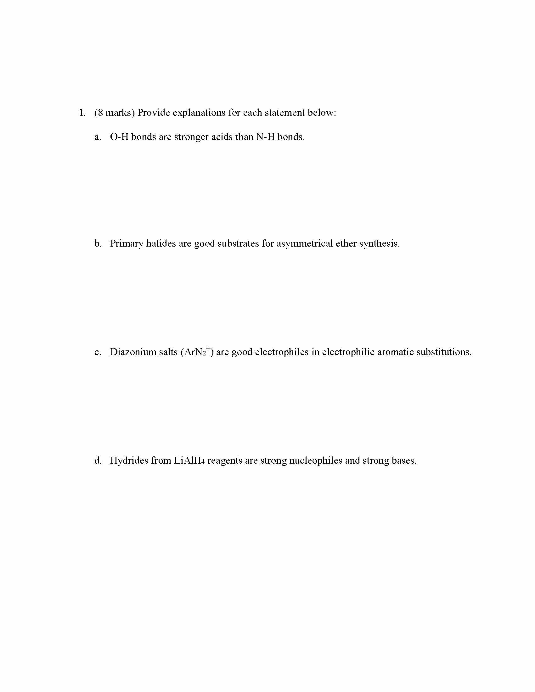 1. (8 marks) Provide explanations for each statement below: a. ...