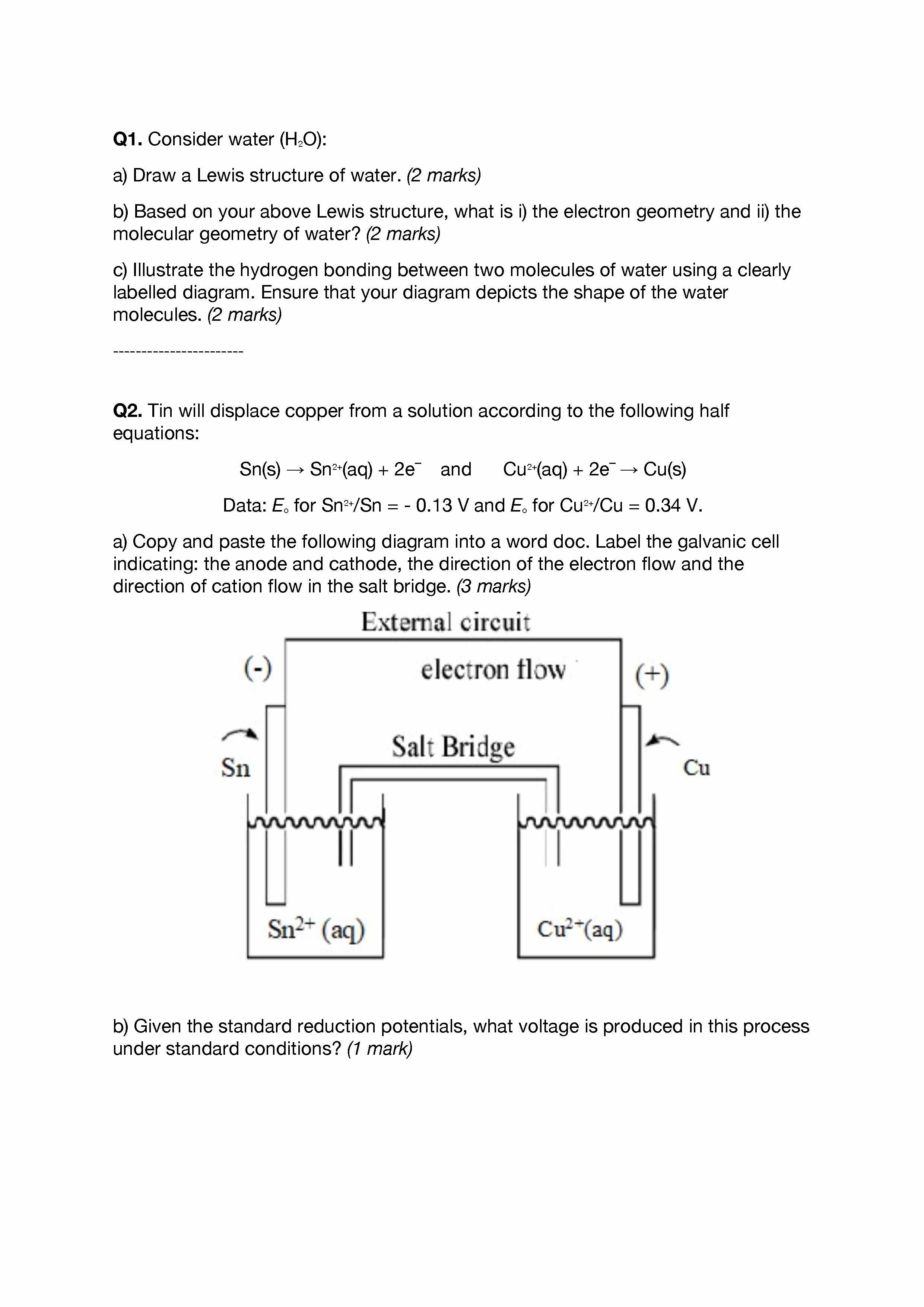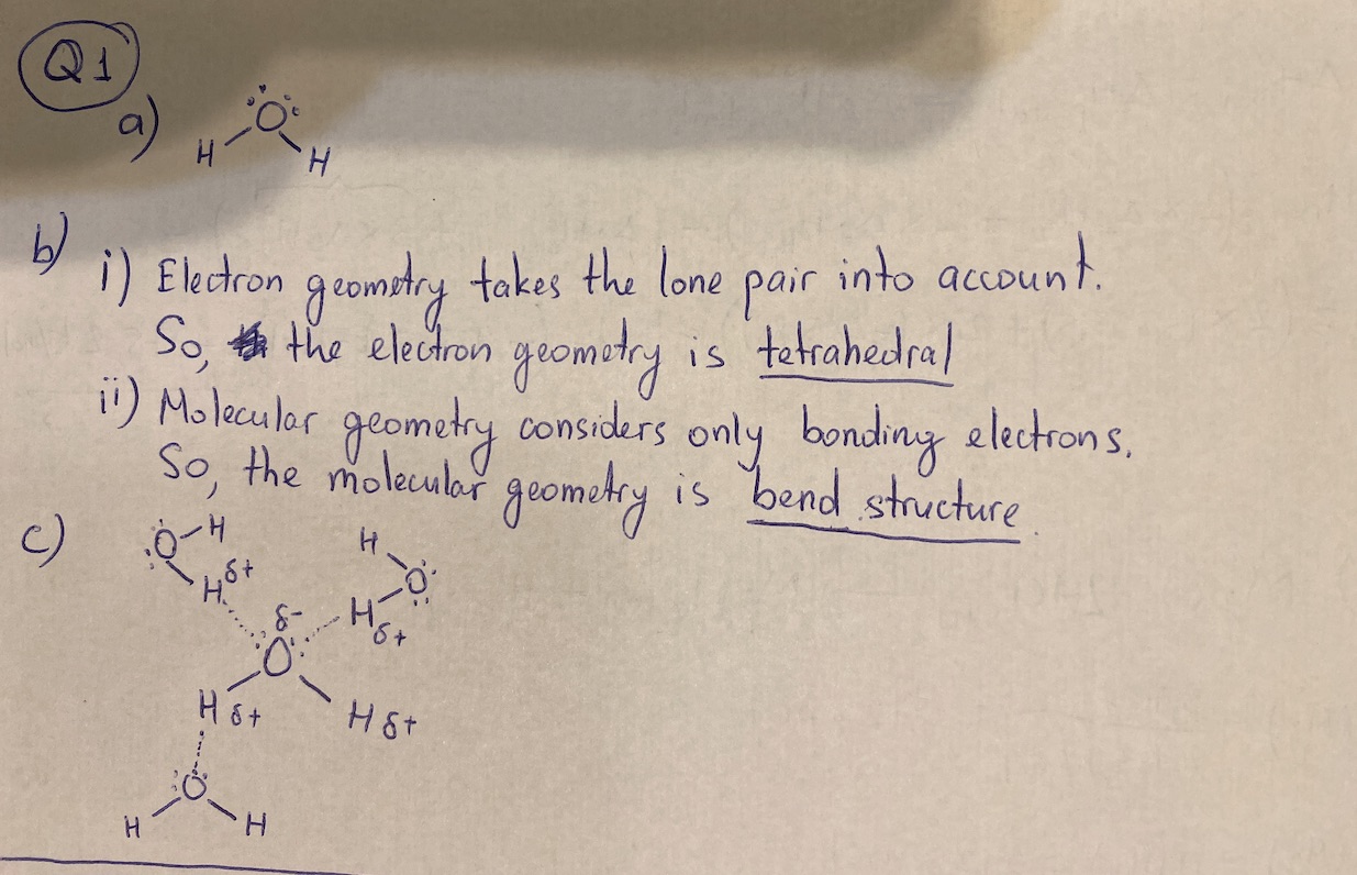 Q1. Consider water (H2O): a) Draw a Lewis structure of water. (2 m...