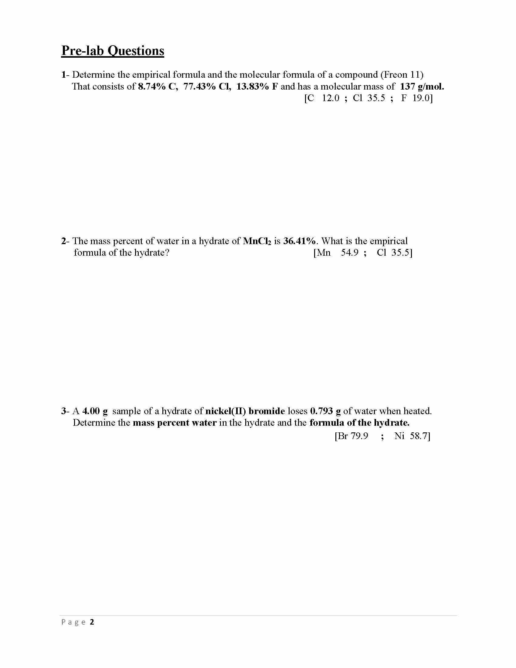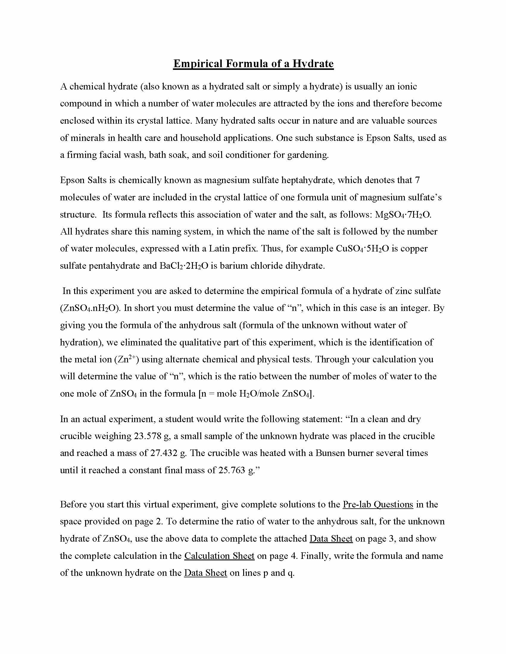 Empirical Formula of a Hydrate A chemical hydrate (also known as a...