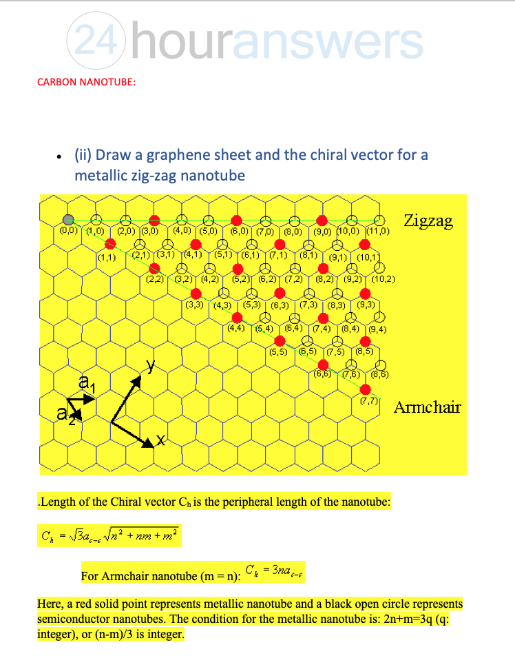 (ii) Draw a graphene sheet and the chiral vector for a metallic zig...