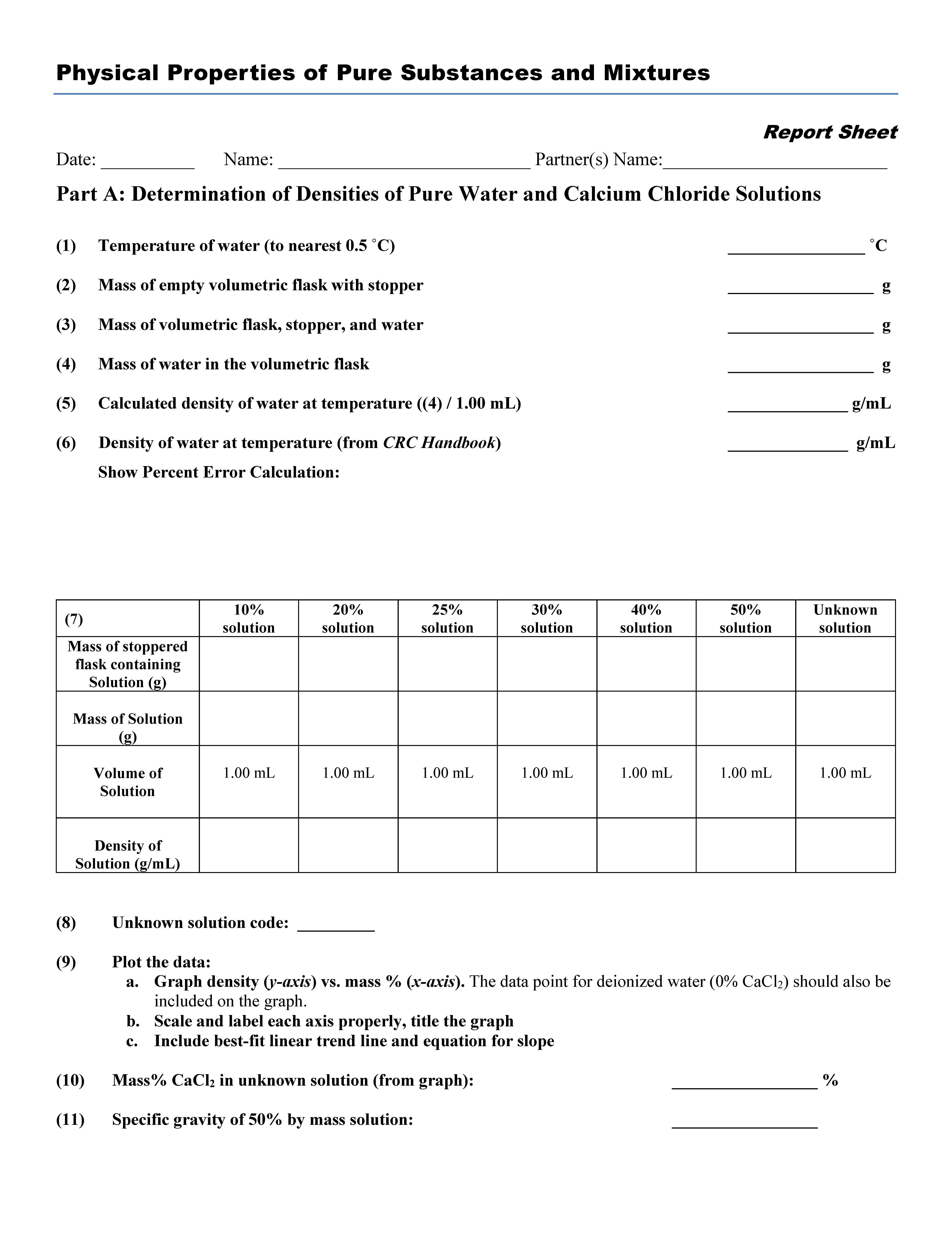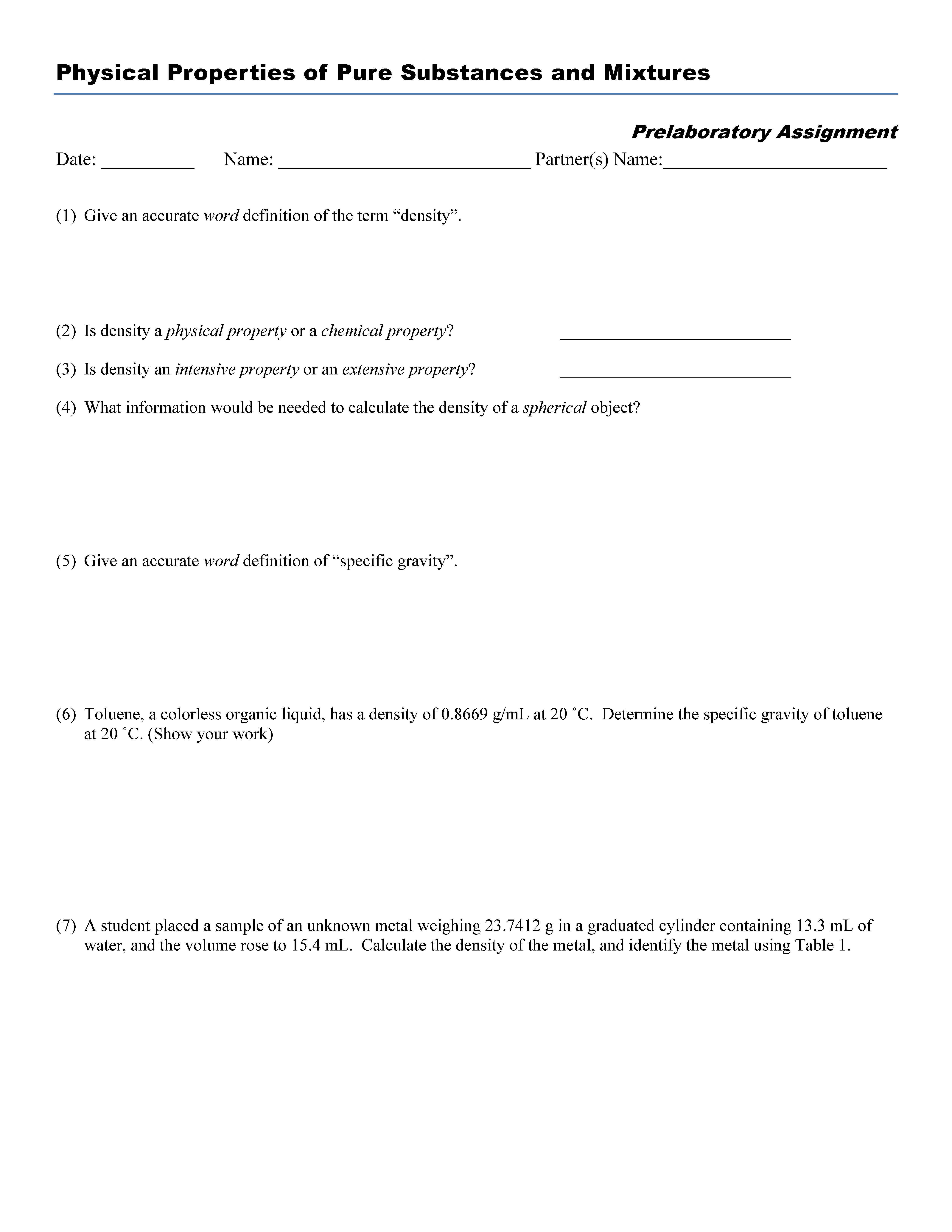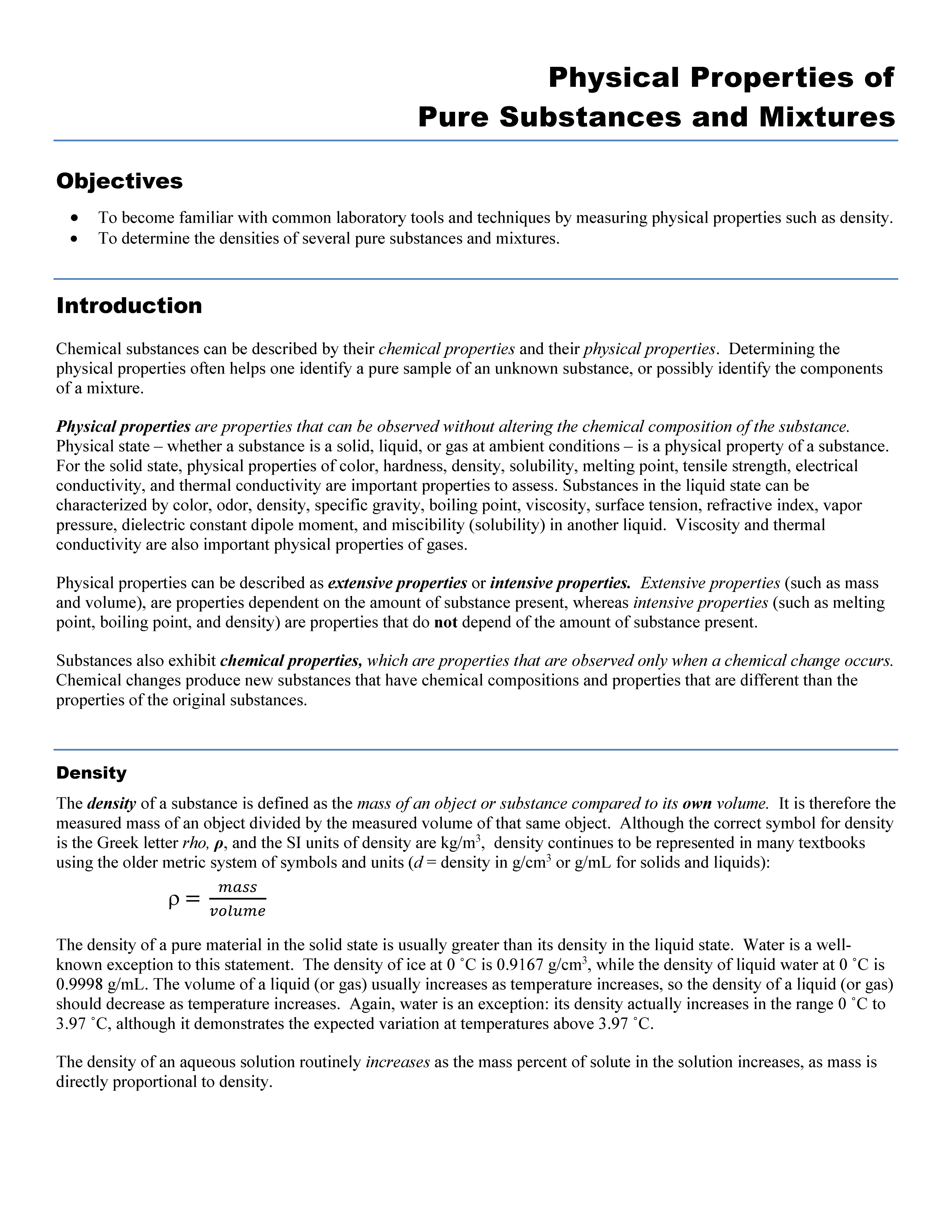 Physical Properties of Pure Substances and Mixtures Objectives รข...