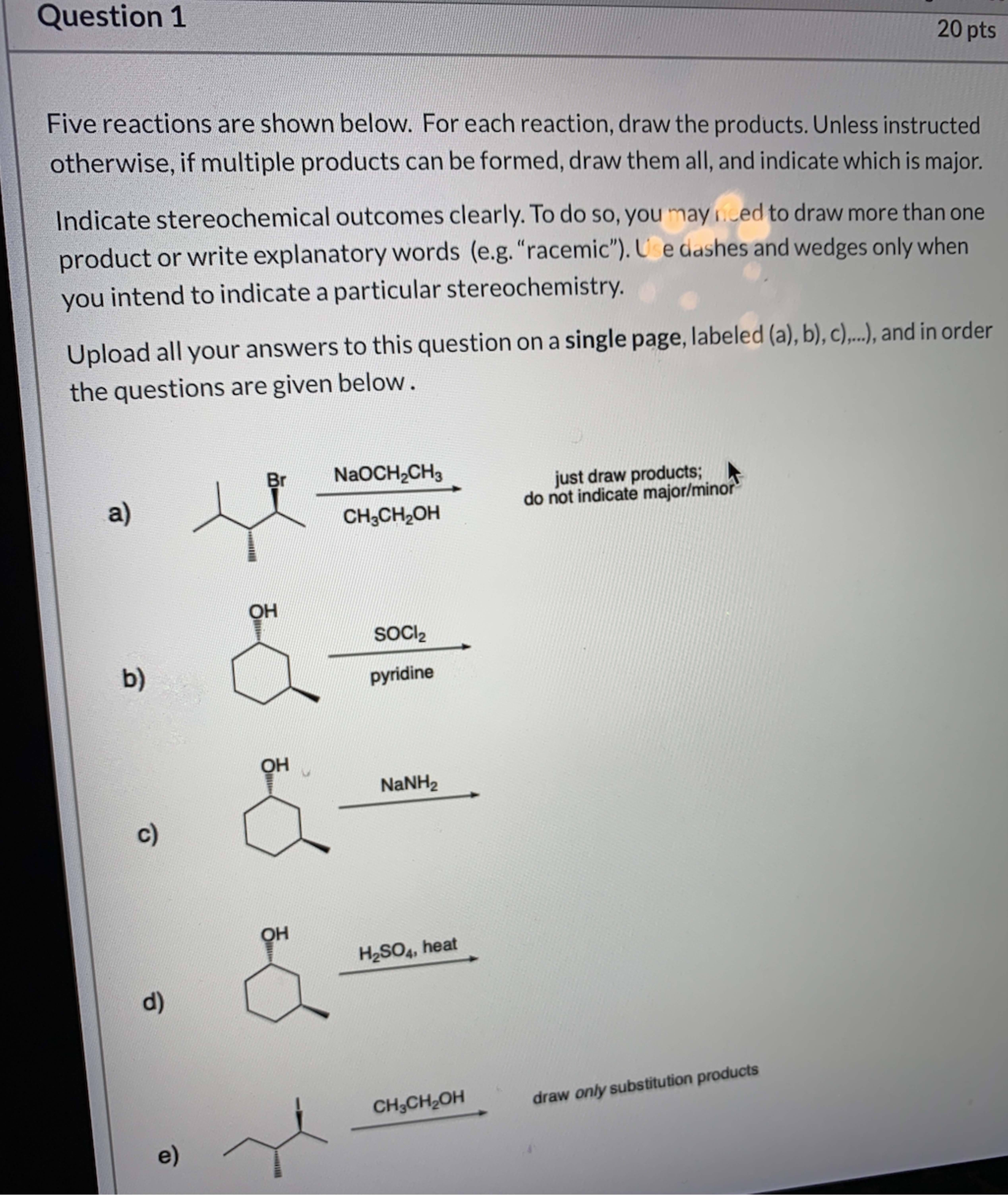Question 1 20pts Five reactions are shown below. For each reactio...
