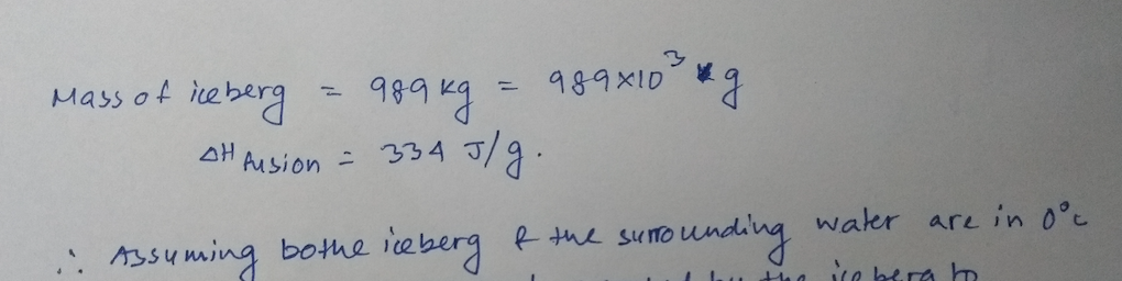 A small iceberg was spotted off the coast. The mass of the iceberg ...