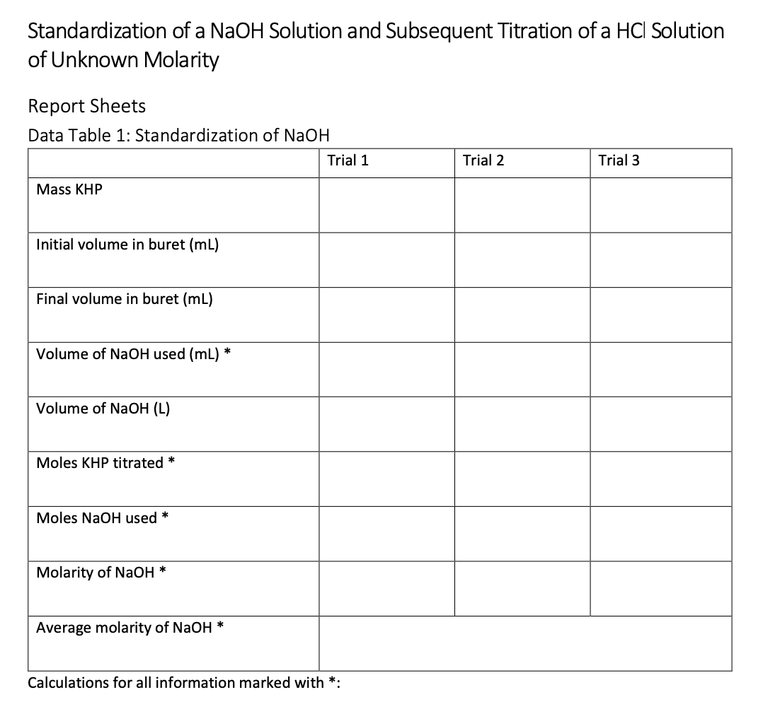 Standardization of a NaOH Solution and Subsequent Titration of a HC...