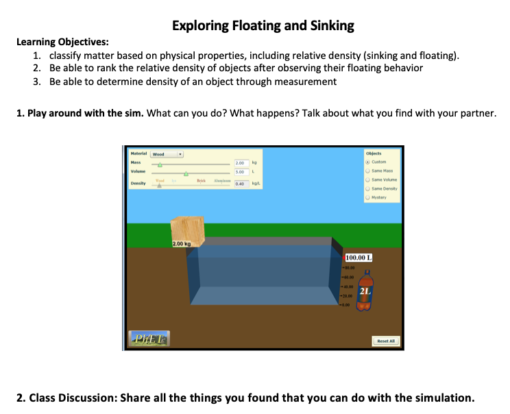 Exploring Floating and Sinking Learning Objectives: 1. classify m...