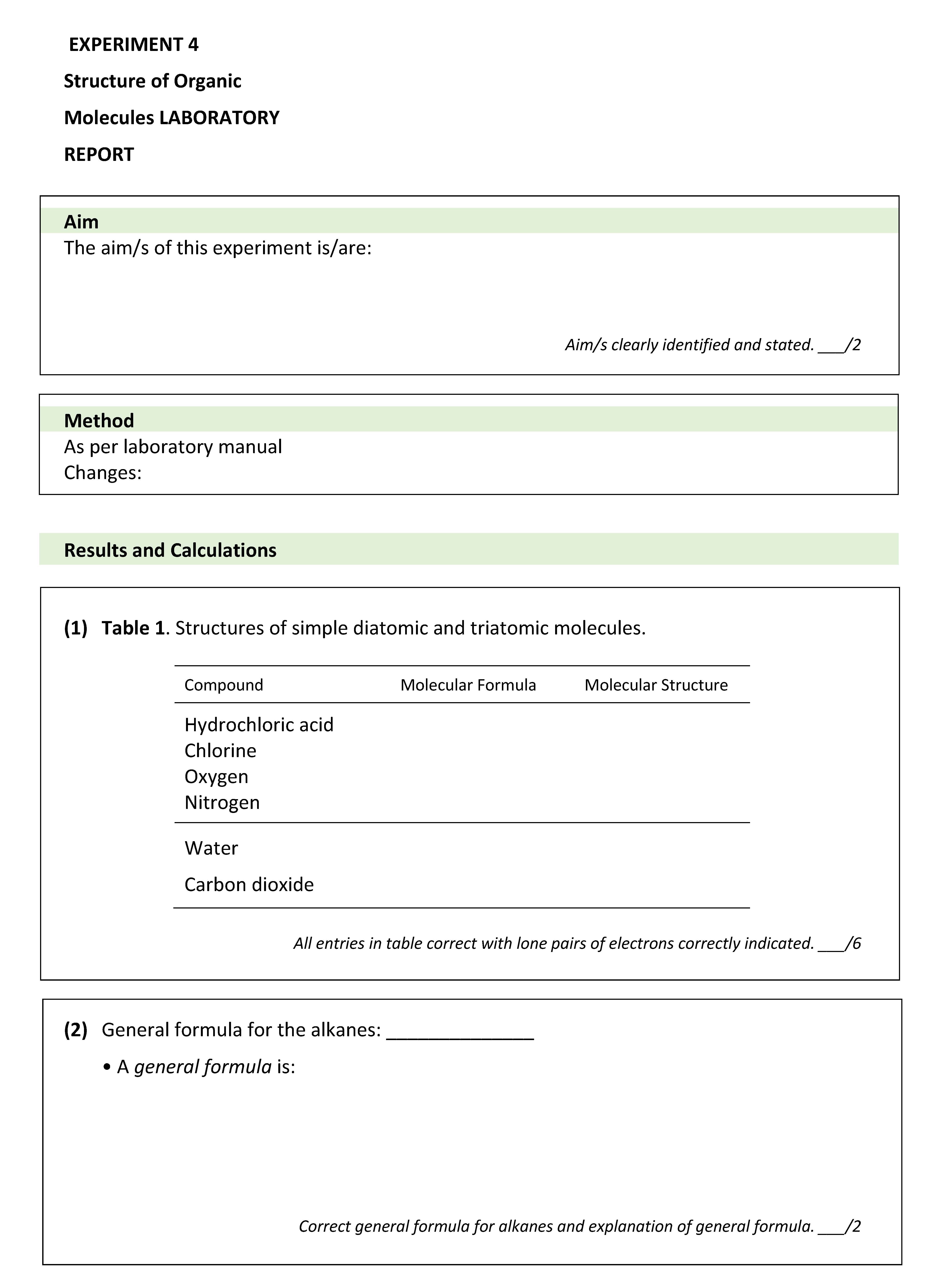 EXPERIMENT 4 Structure of Organic Molecules LABORATORY REPORT A...