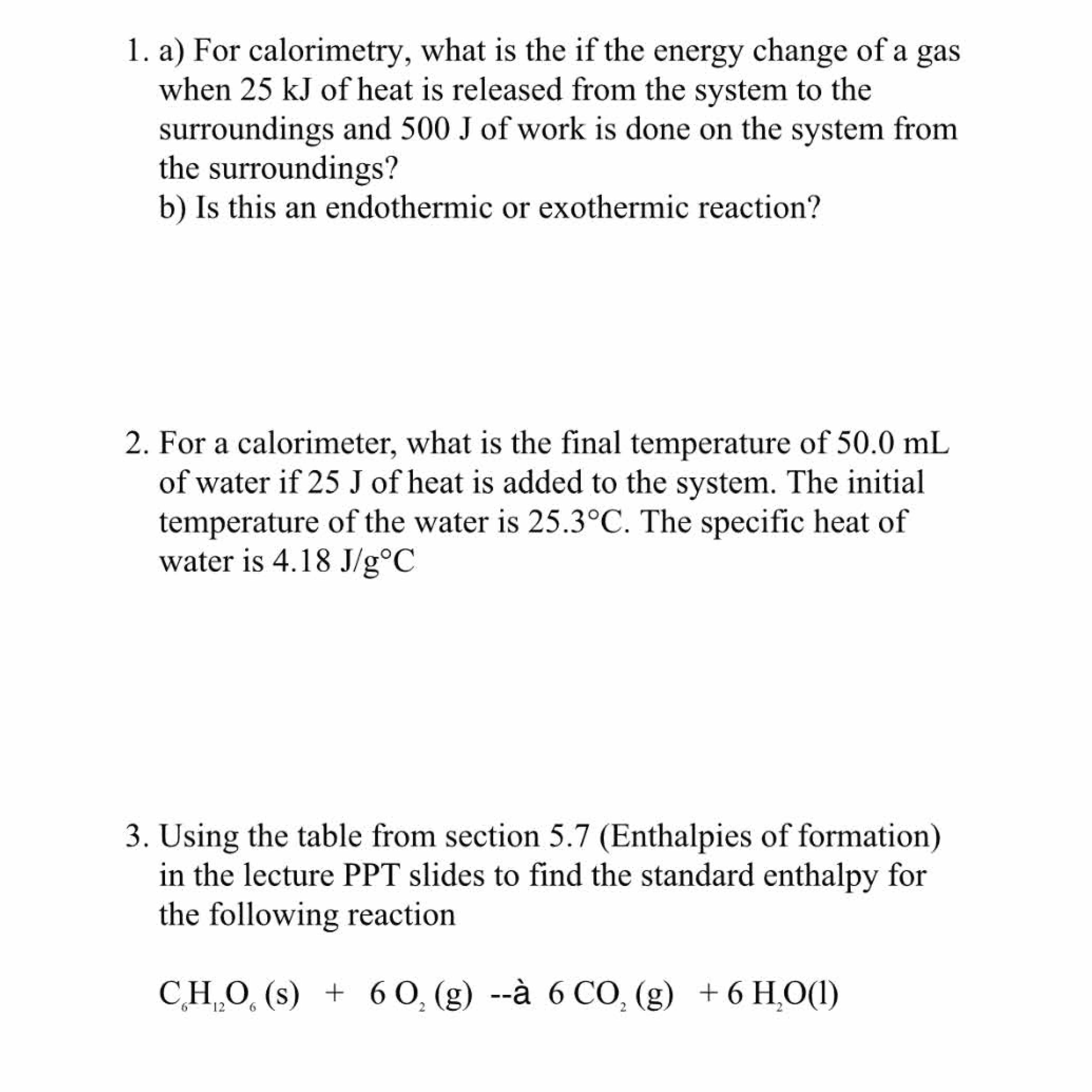 1 a) For calorimetry, what is the if the energy change of a gas wh...